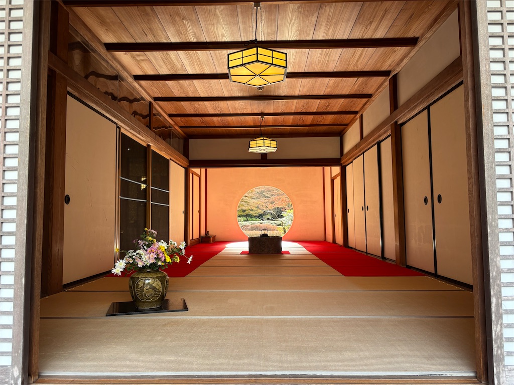 まず訪れたのは、明月院。紫陽花で有名な明月院は、家族でも訪れたことがある場所。とは言え、秋に来たのは初めてで、丸窓に切り取られた景色はまるで1枚の絵のようで、言葉がなくても「きれいだね」が伝わる時間でした。子どもと一緒のお出掛けも好きだけれど、たまには大人だけで、季節を静かに味わうのもいい。
