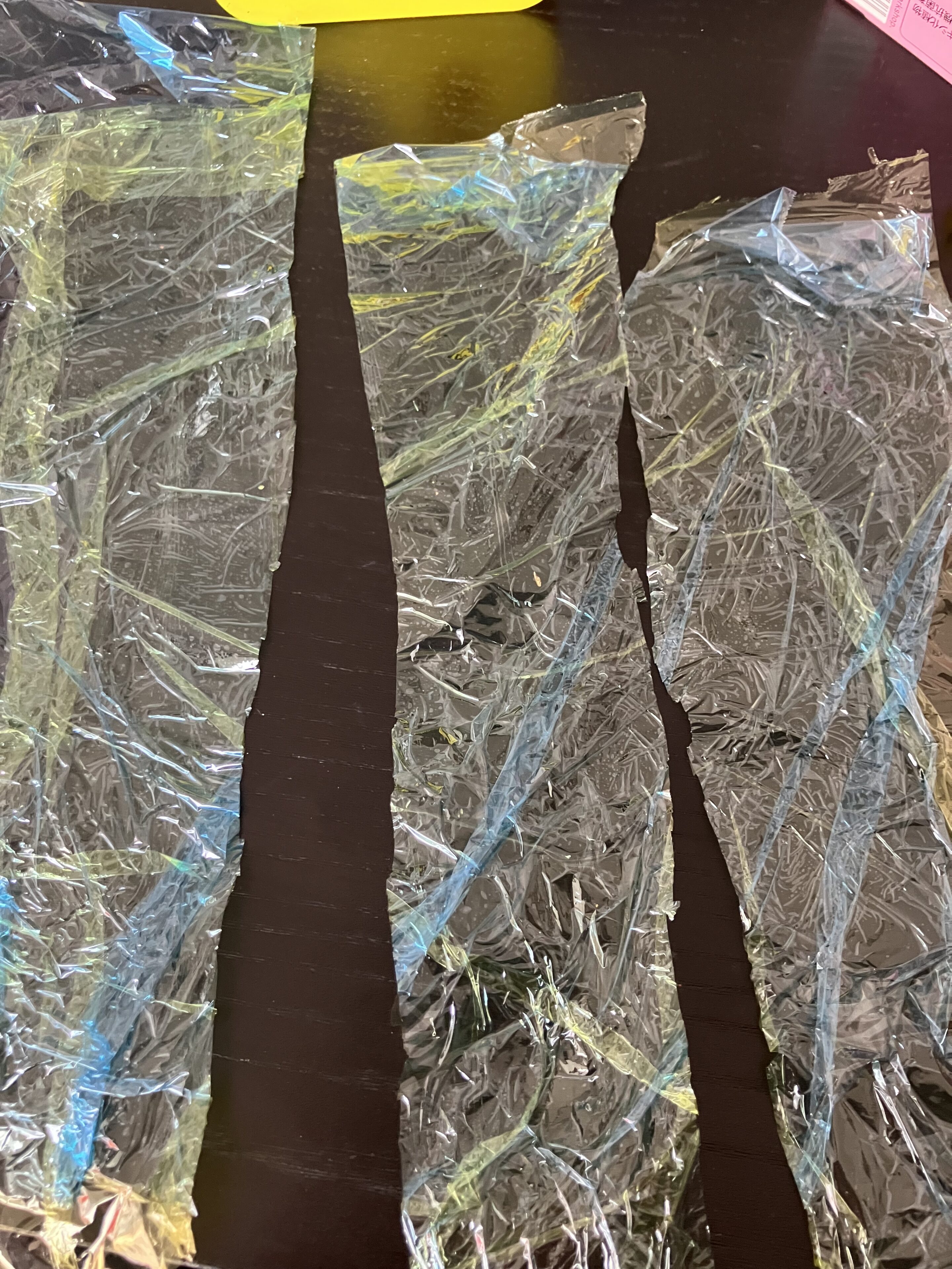このリースを作るとき、青色と黄色を重ねると緑色になるっていうのも学べるね。