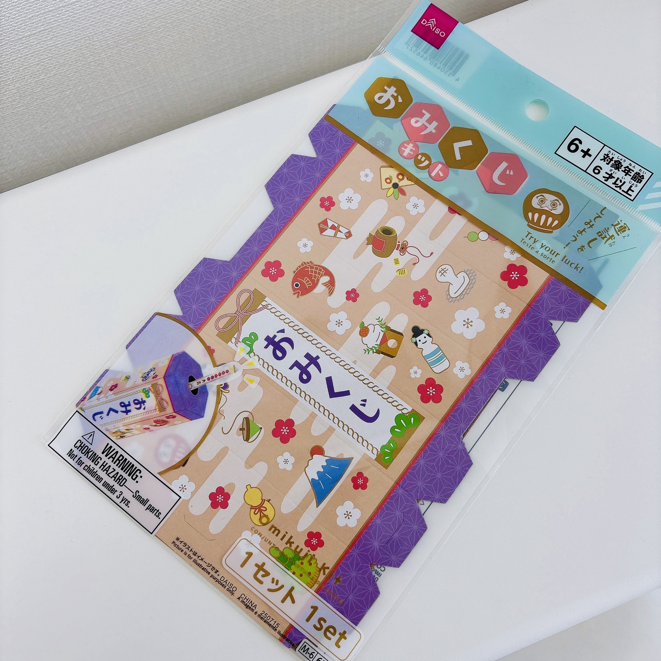 おみくじの手作りキットがダイソーに売っていたので購入してみました!くじは7本入っているそうです。これを年末に子どもたちと作成し、年明けの運試しに家族で引いてみたいと思います!作って楽しい、引いて楽しい!二度楽しめる!結局【大吉】が出るまで引くというシナリオであると想像しますが。ちょっとしたワクワクいかがですか?