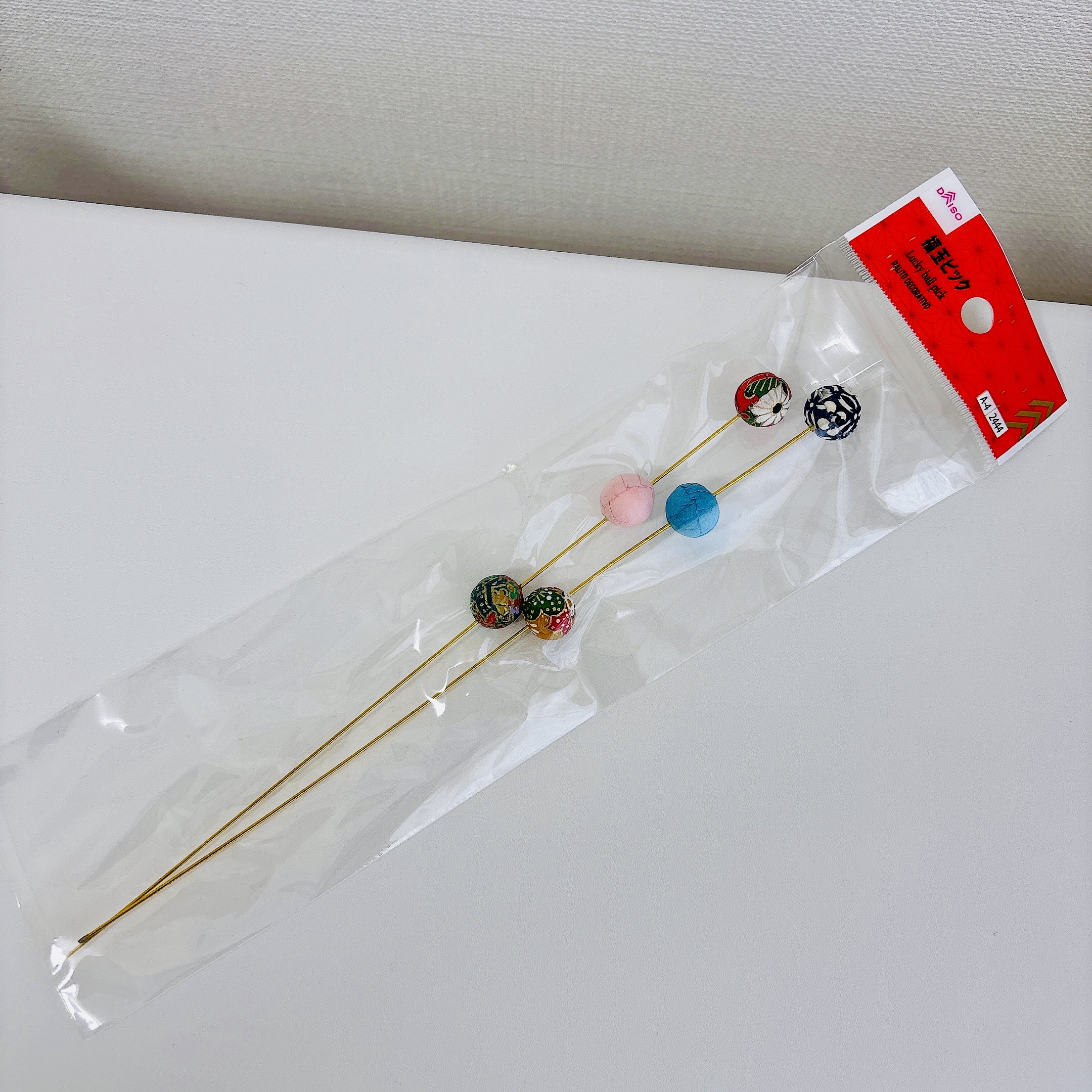 いろいろなタイプの福玉ピックが売っていました!花や飾りに挿して色々な用途で使えます。植木鉢や門松などの装飾手作り花や飾りに挿して使用するとの記載がありますが、そのまま置いておくだけでもとっても華やかでお正月ムードが高まります。飾りに添えてみるのはいかがでしょうか?