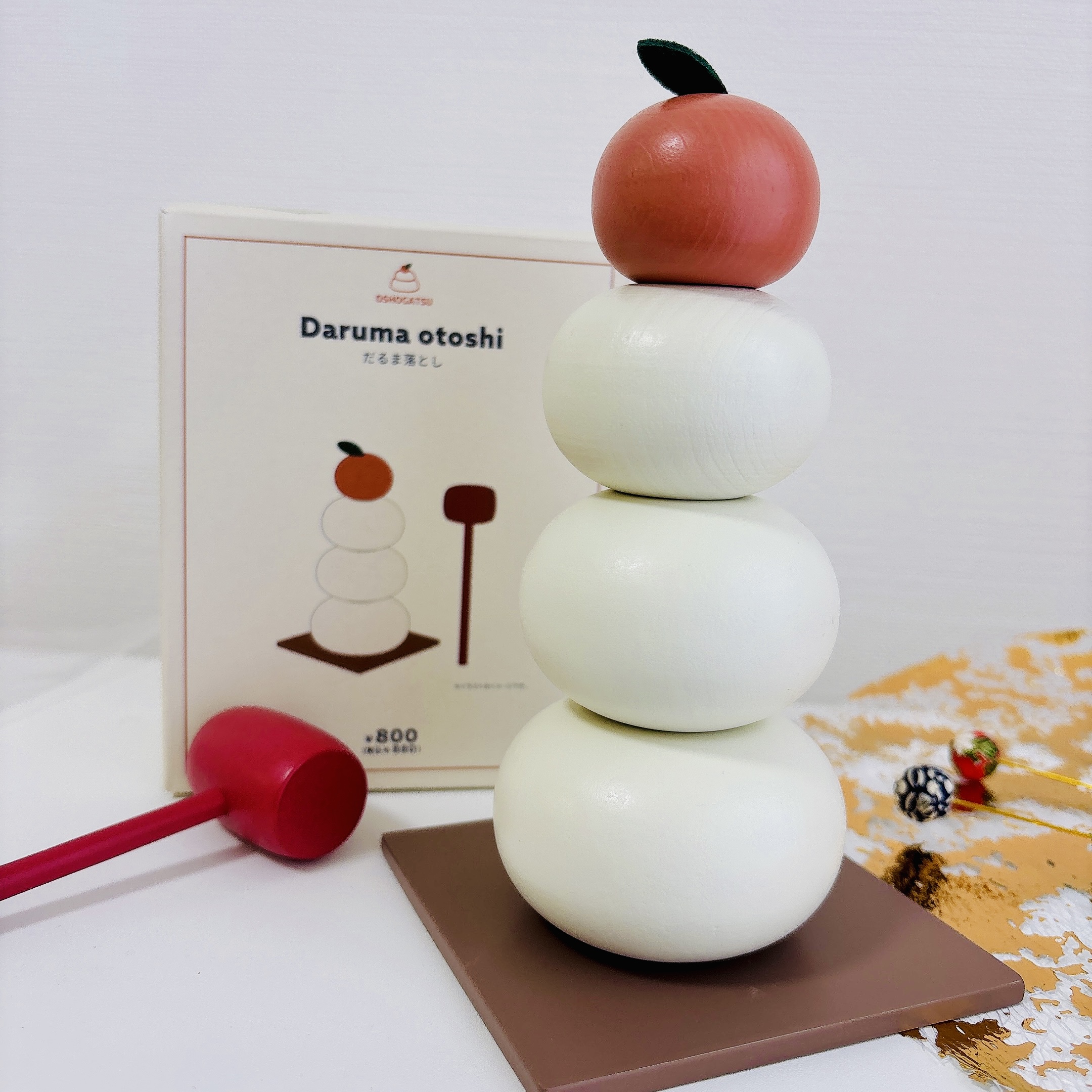 鏡餅オブジェかと思いきやこちら、だるま落としができるんです。キッズコーナーに置いてありました!鏡餅オブジェとしても、子どもたちとだるま落としとして遊ぶこともできる優れもの。他にもスリコには鏡餅オブジェがあったのですが、どうせなら遊び心があるものを置きたかったので、こちらを購入しました!子どもとも遊べて一石二鳥です。お値段は880円(税込)で少し高めですが、おすすめです。