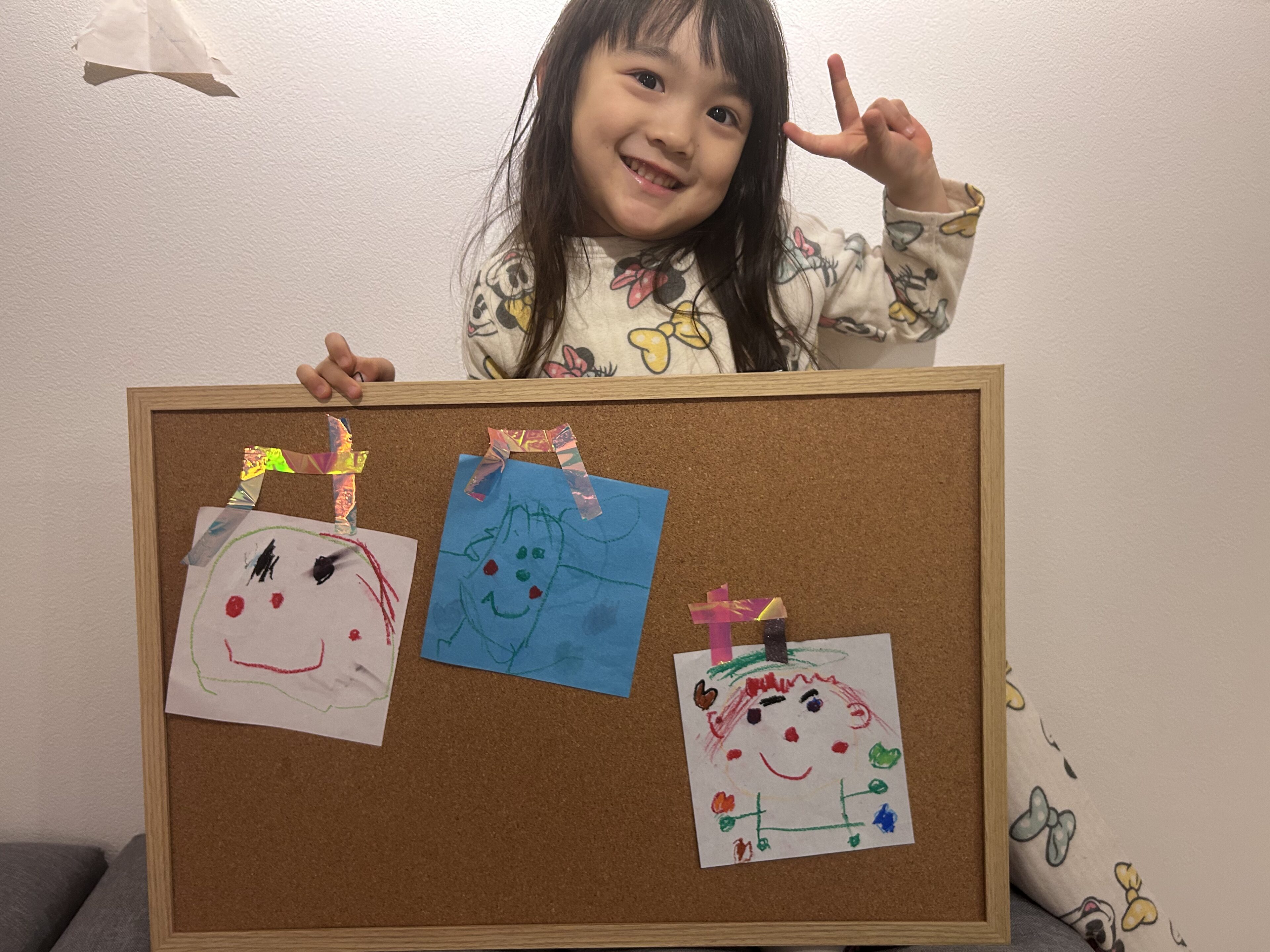 子どもの作品はその瞬間にしか描けない、かけがえのない宝物。コルクボードを使えば、そんな作品をより気軽にかわいく飾ることができました!