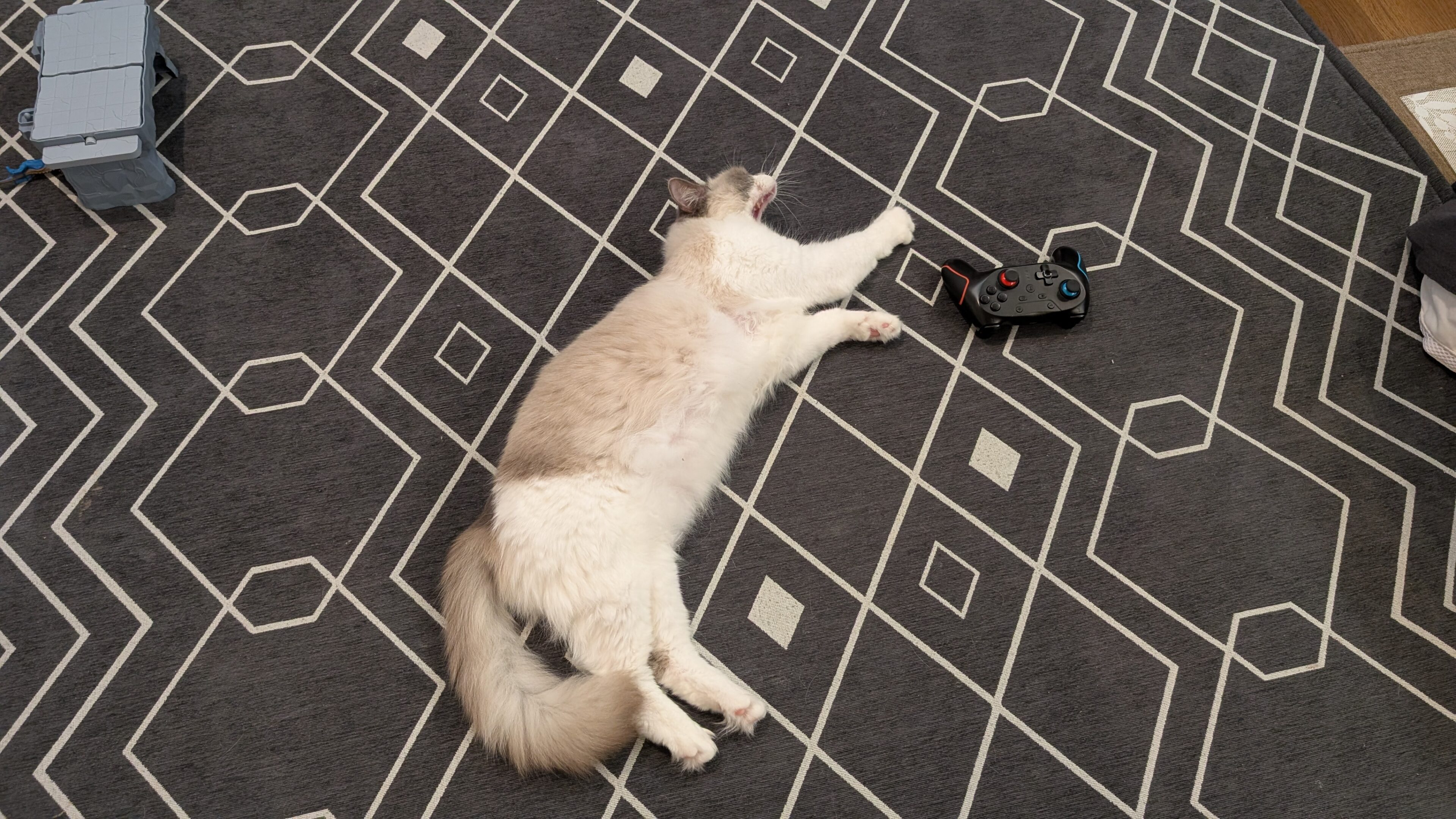 そして四男。実はうちの猫から“下に見られている”のか、「遊んでー!」と飛びつかれることが多く、びびっていることもあり(笑)、あまり好きじゃないのかな?と思っていました。