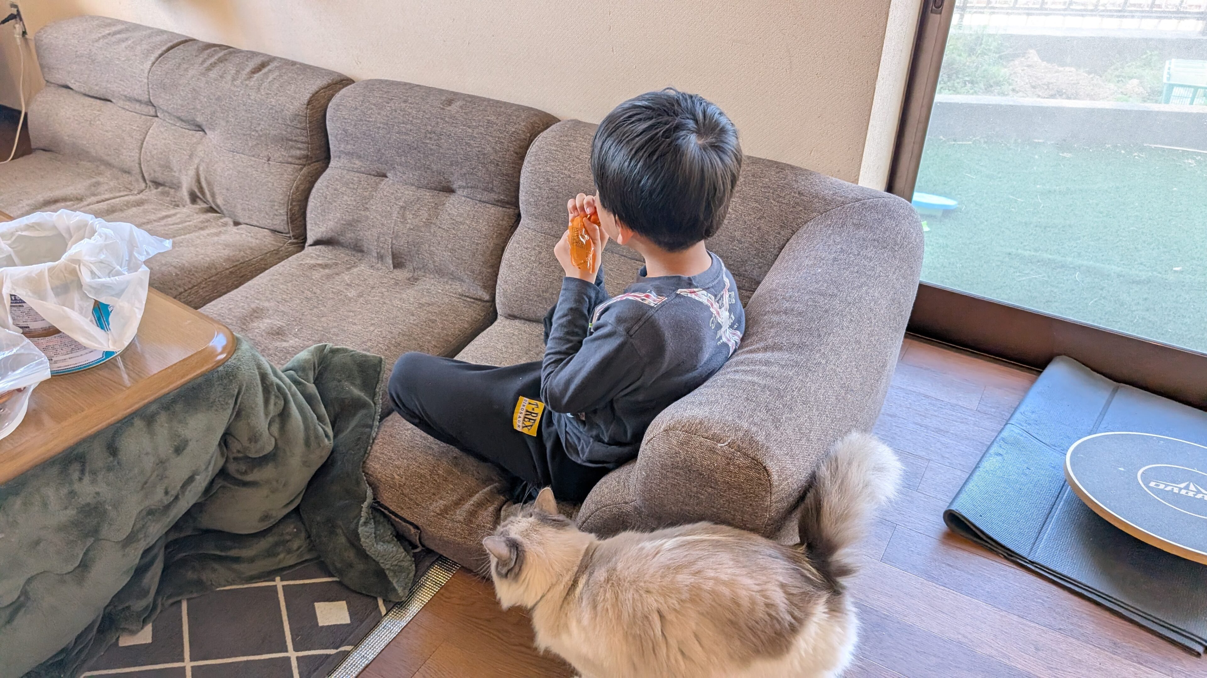 長男は、うちの猫が大好き。急に抱きしめたり、一緒に遊んだりと、外から見ても完全に猫派です。
