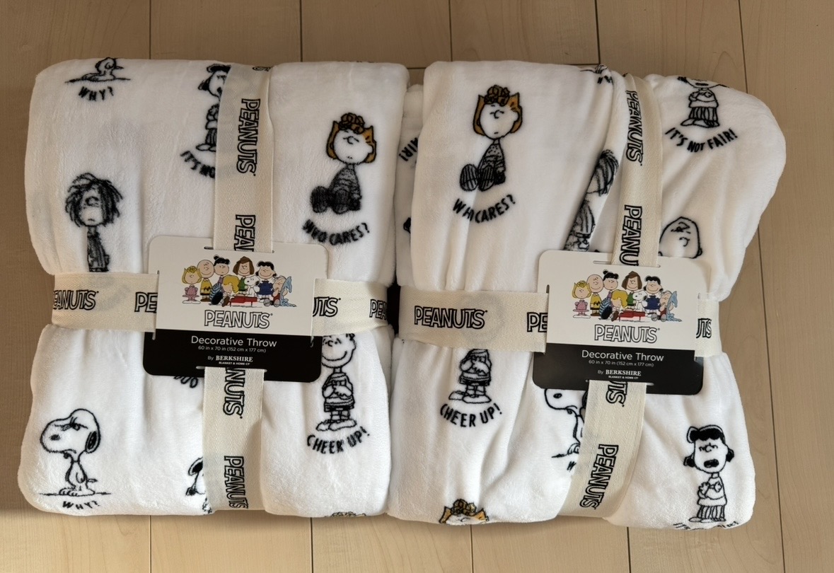 スヌーピーPEANUTSTHROW1568円 ベイビーブランケット1498円