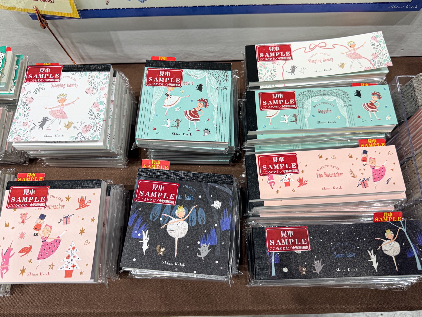 ノート以外にもメモ帳、一筆箋など、バレエ好きの心をくすぐるラインナップです。
