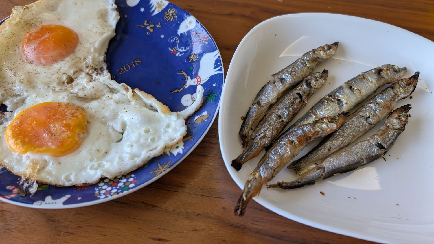 ししゃもをグリルで焼いたり、目玉焼きを焼く日も。