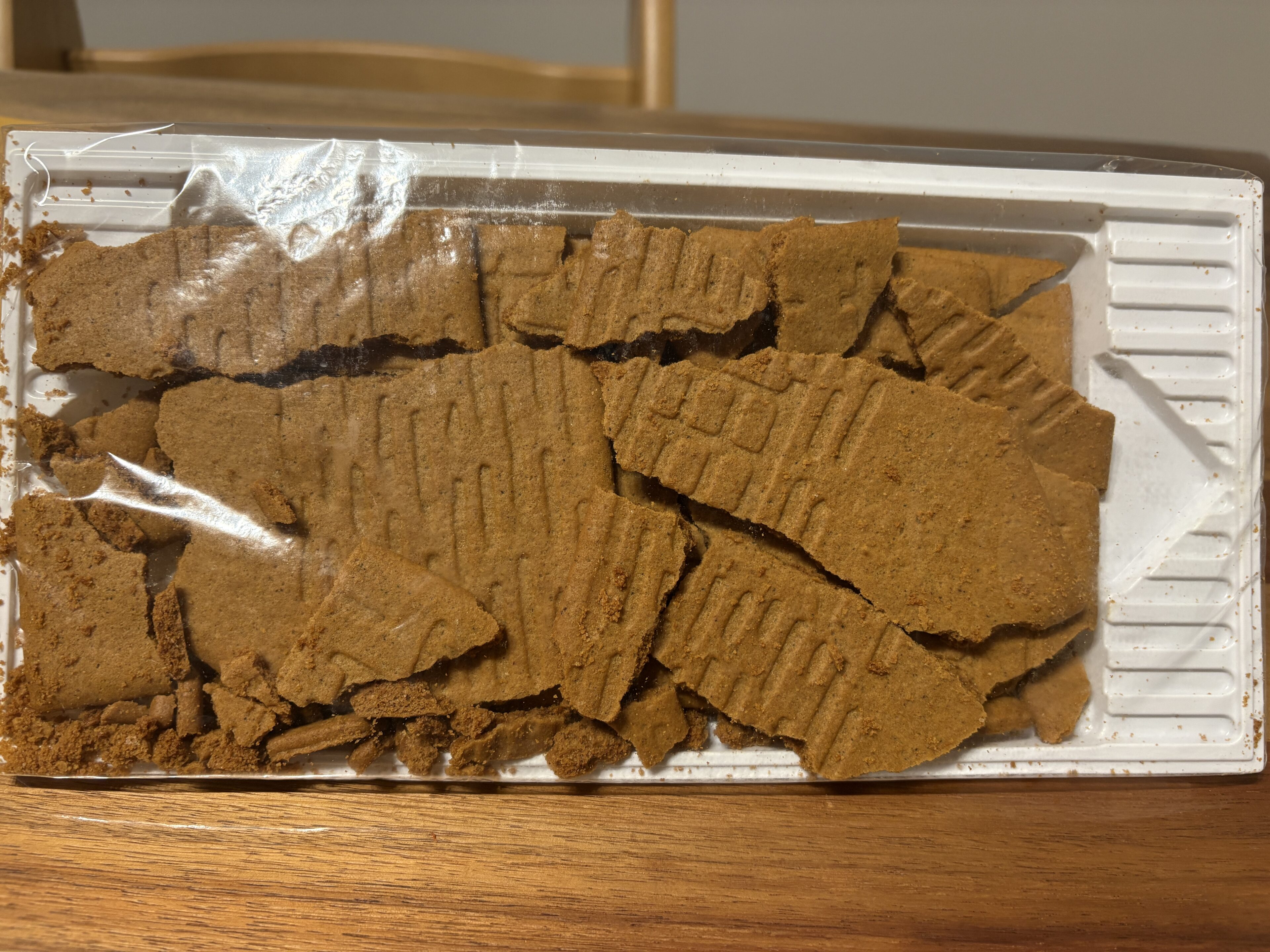 事件は購入時から始まっていた。2歳で何でもやりたがりの娘が、カルディの袋を「持つー!」と運んでくれたのですが……。いざ、子どもたちが寝静まった夜、夫と「さあ建てるか!」と開封したら、2箱買ったうちの1箱が、見事に割れ割れ状態(涙)2人分ない!!きょうだい喧嘩は何としても避けたい。