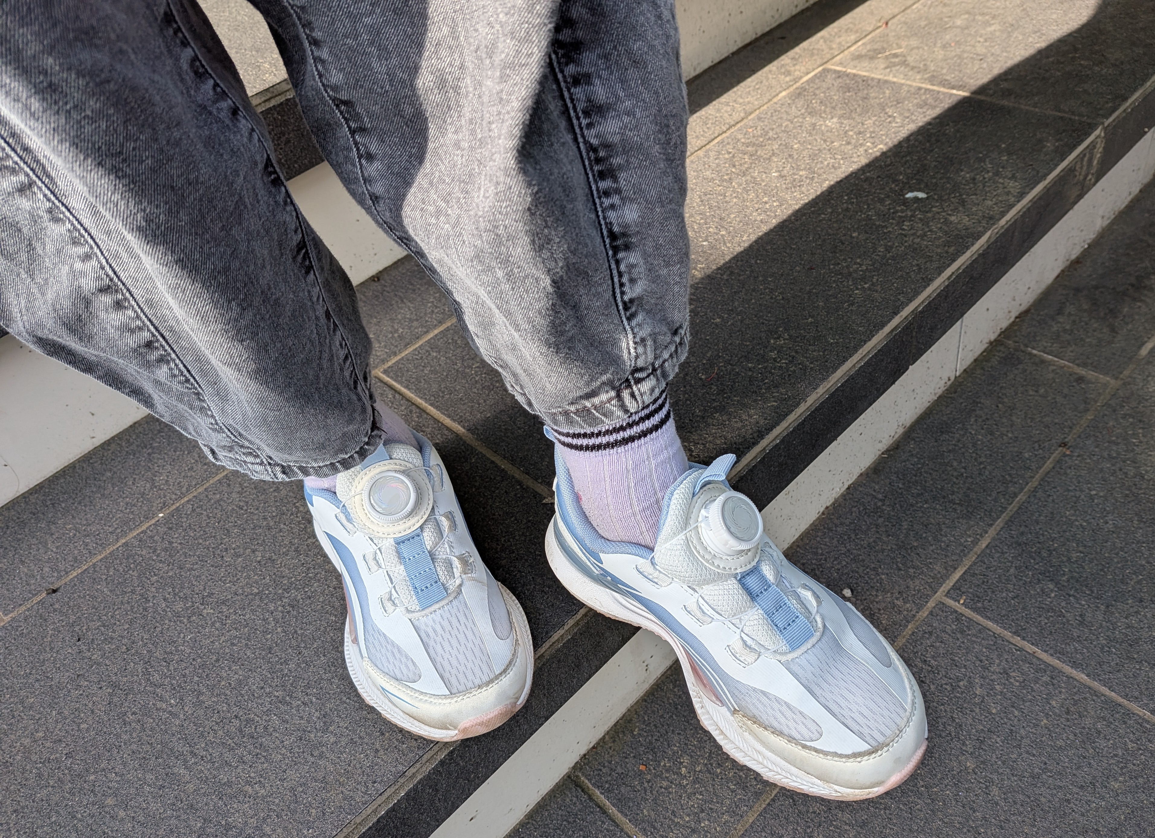 長男は靴ひもを結ぶのがまだ難しく、マジックテープのスニーカーを履いていましたが、こちらのスニーカーはダイヤルをカチカチ回してきつさを調整するものでした。