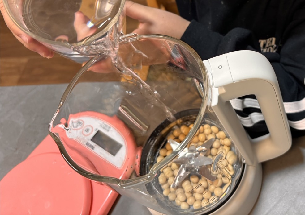 使う材料は乾燥大豆だけというシンプルさ。お水と一緒にブレンダーに入れてスイッチを押すだけで、とろっとしたできたての豆乳を作ることができました。市販だと味の違いが出しづらい豆乳ですが、できたては大豆のやさしい甘みがふわっと広がる、素朴で飽きない味。少し水の量を調整したり、砂糖を入れたり工夫すれば、豆乳に抵抗のある子どもたちも喜んで飲んでくれました。