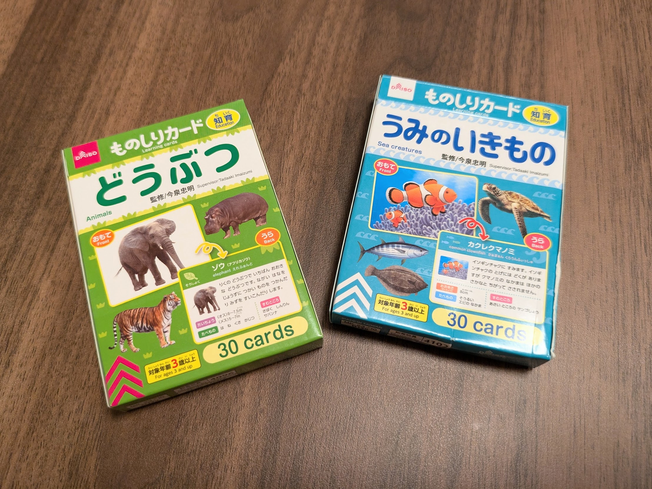 遊び3 ダイソーのものしりカード「どうぶつ」「うみのいきもの」