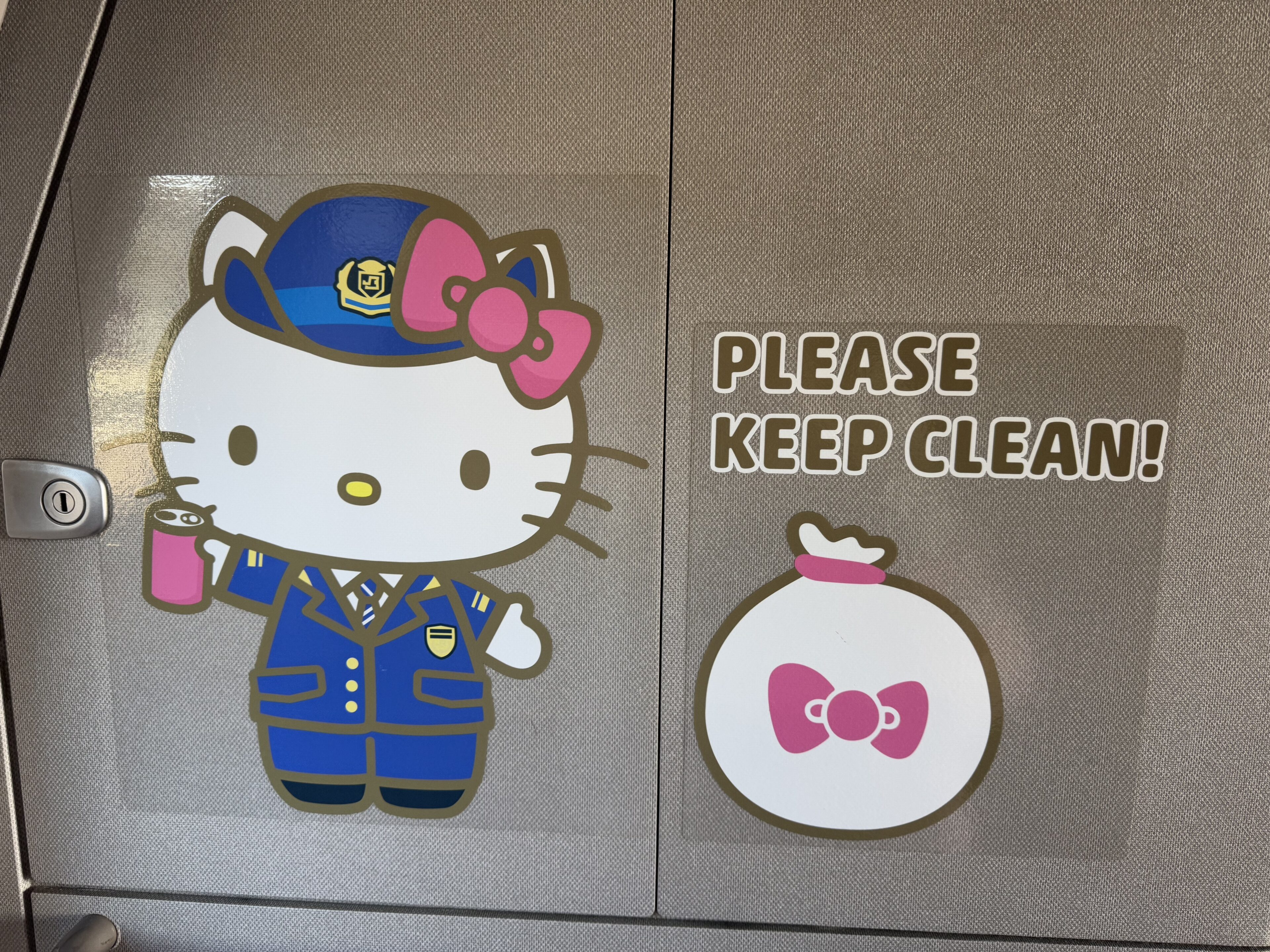 3〜8号車は通常の座席ですが、出入口にはハローキティの装飾があり、特別感はしっかりあります。