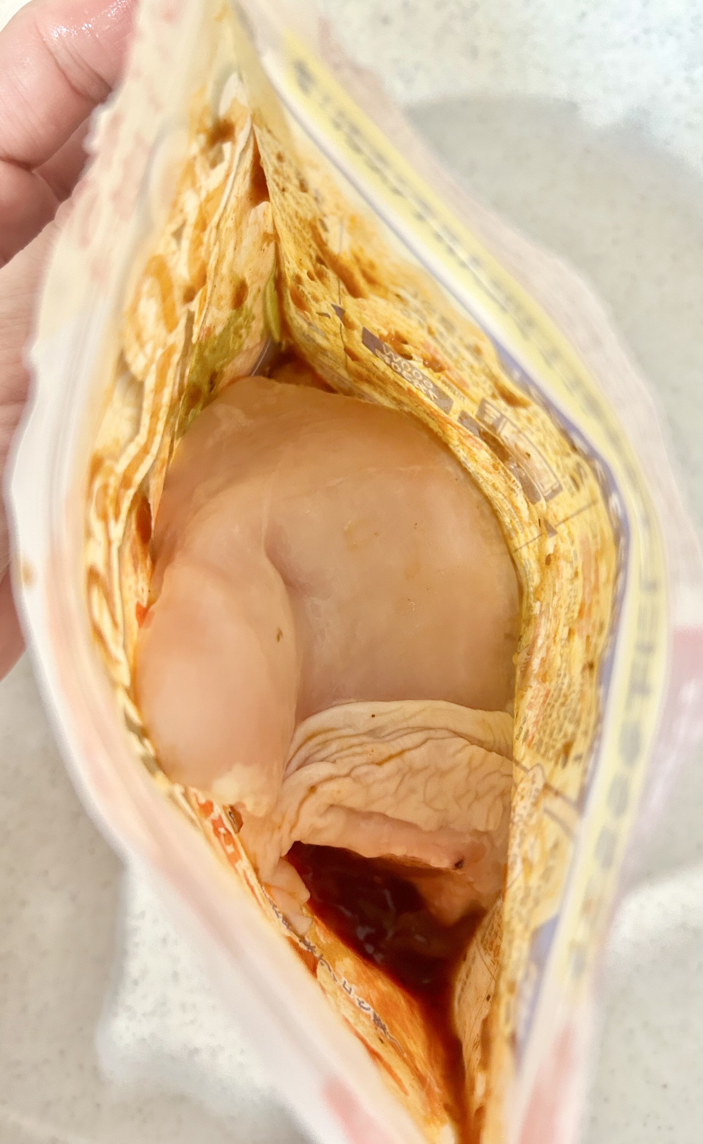そんなときに助けられているのが、キッコーマンの「うちのごはん」シリーズの“鶏むね肉を入れてレンジでチン”する袋タイプ。