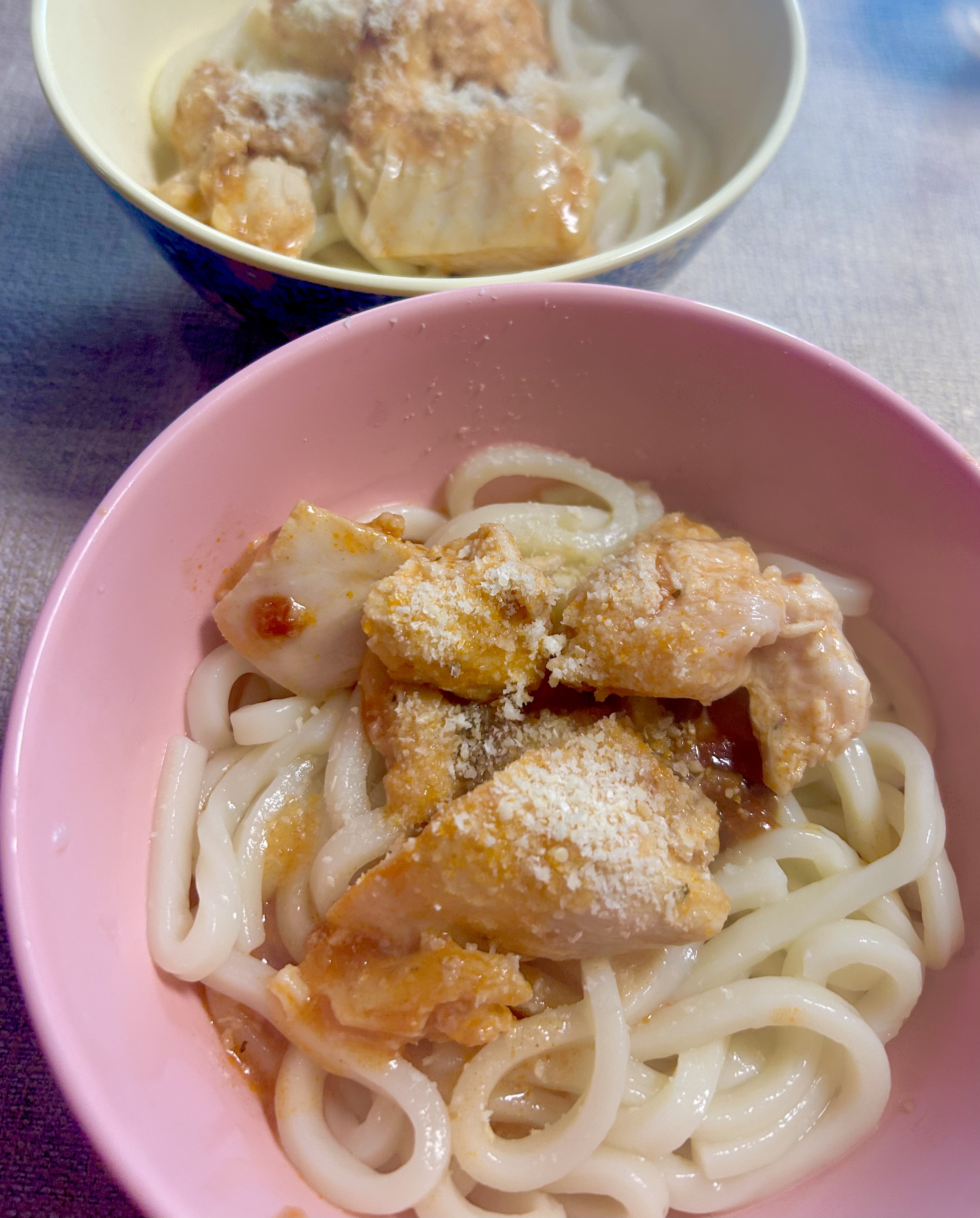 そのまま食べてももちろん美味しいけれど、うどんにかけると絶品トマトうどんに。