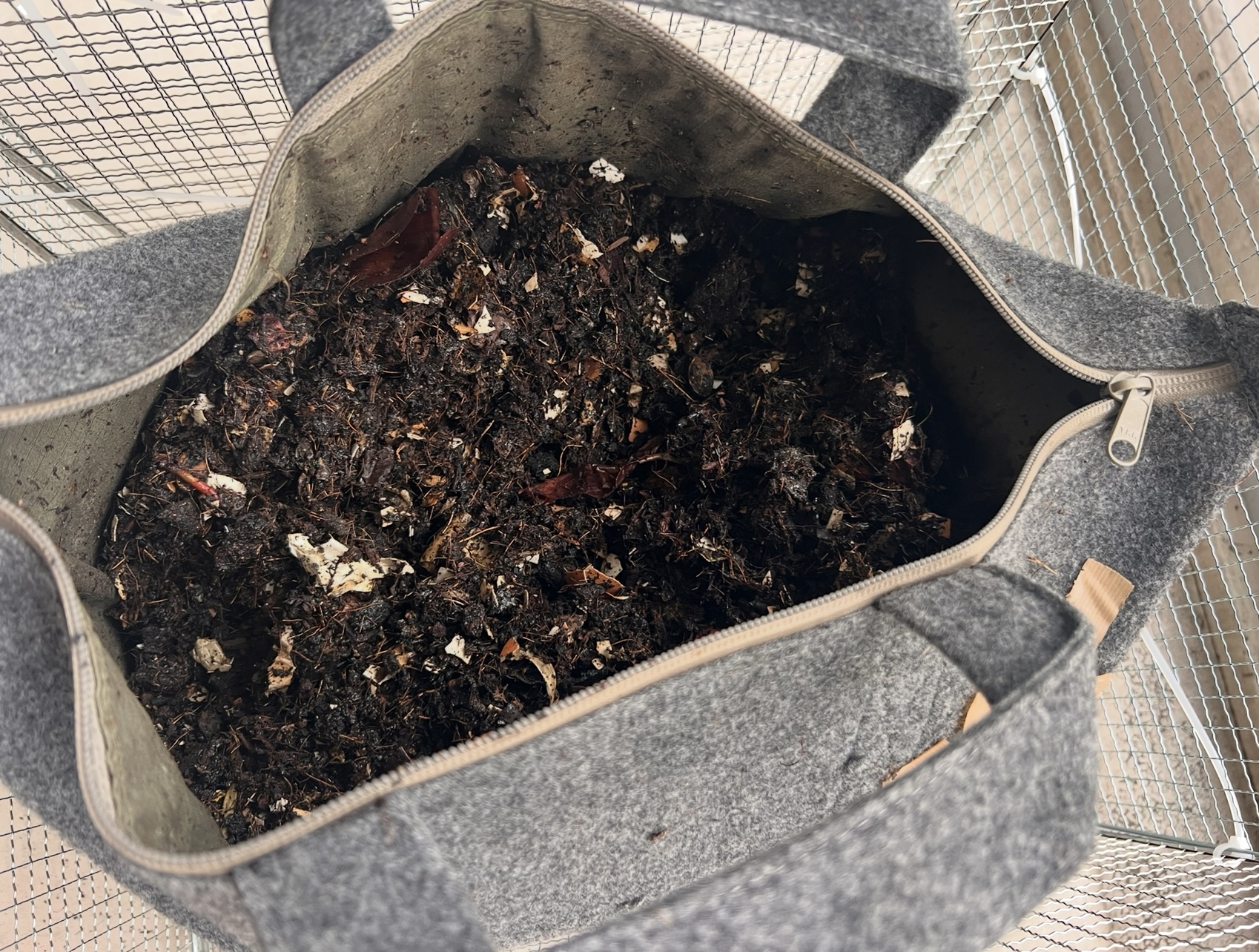 機械のように密閉して乾燥させる仕組みではなく、水分を加えながら分解していくため、袋の中には生ごみ特有のにおいは多少あります。