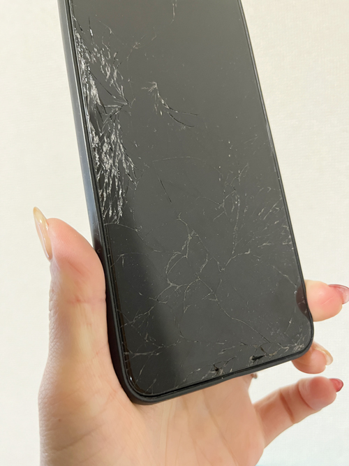 よく見ると、貼ってあった強化ガラスフィルムがバキバキに割れています。「こんな状態でも操作できるんだ」と感心したのも束の間、画面からポロポロと小さな破片がこぼれ落ちるのが見えました。