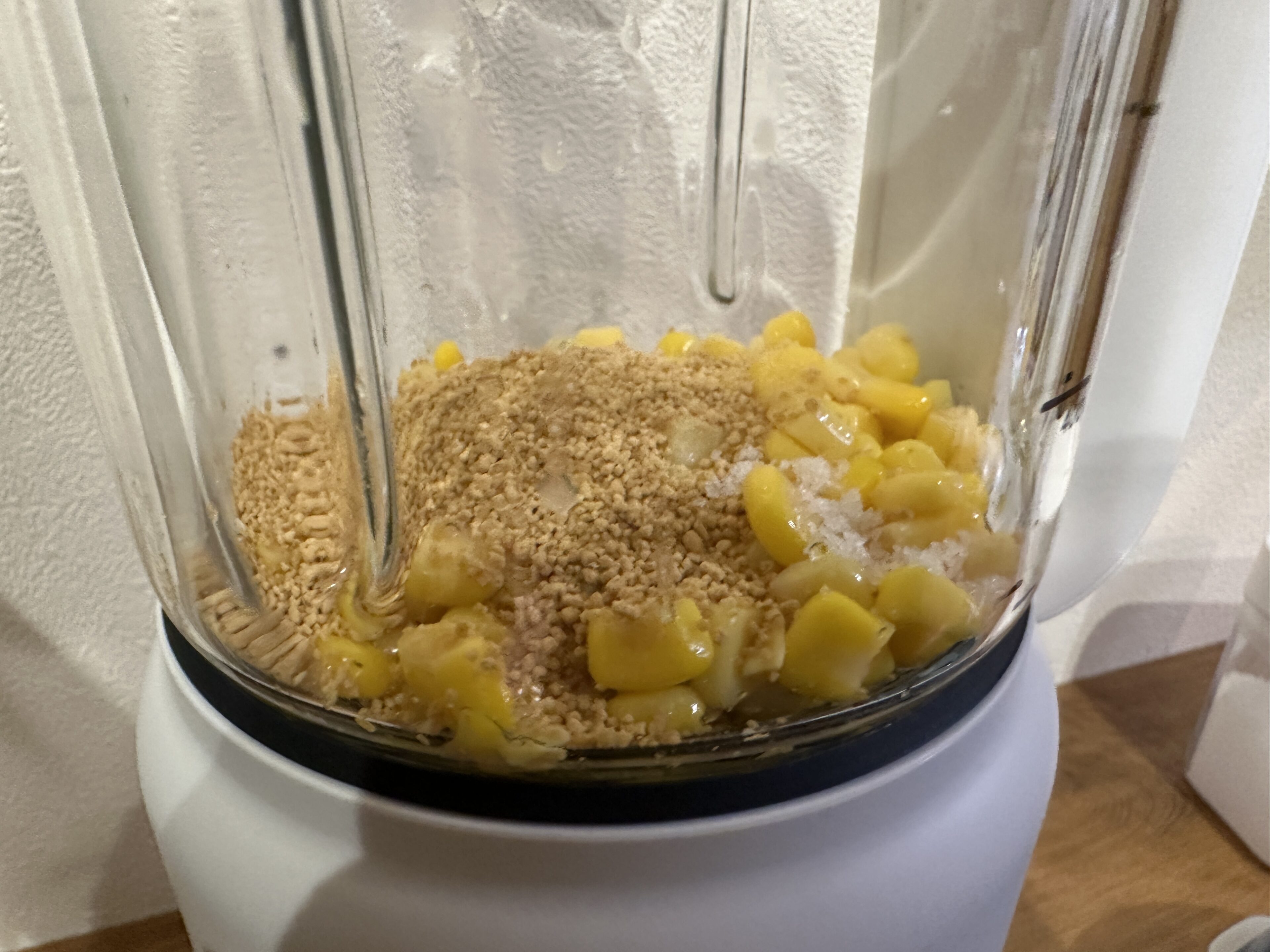 1)コーン缶をミキサーに入れます