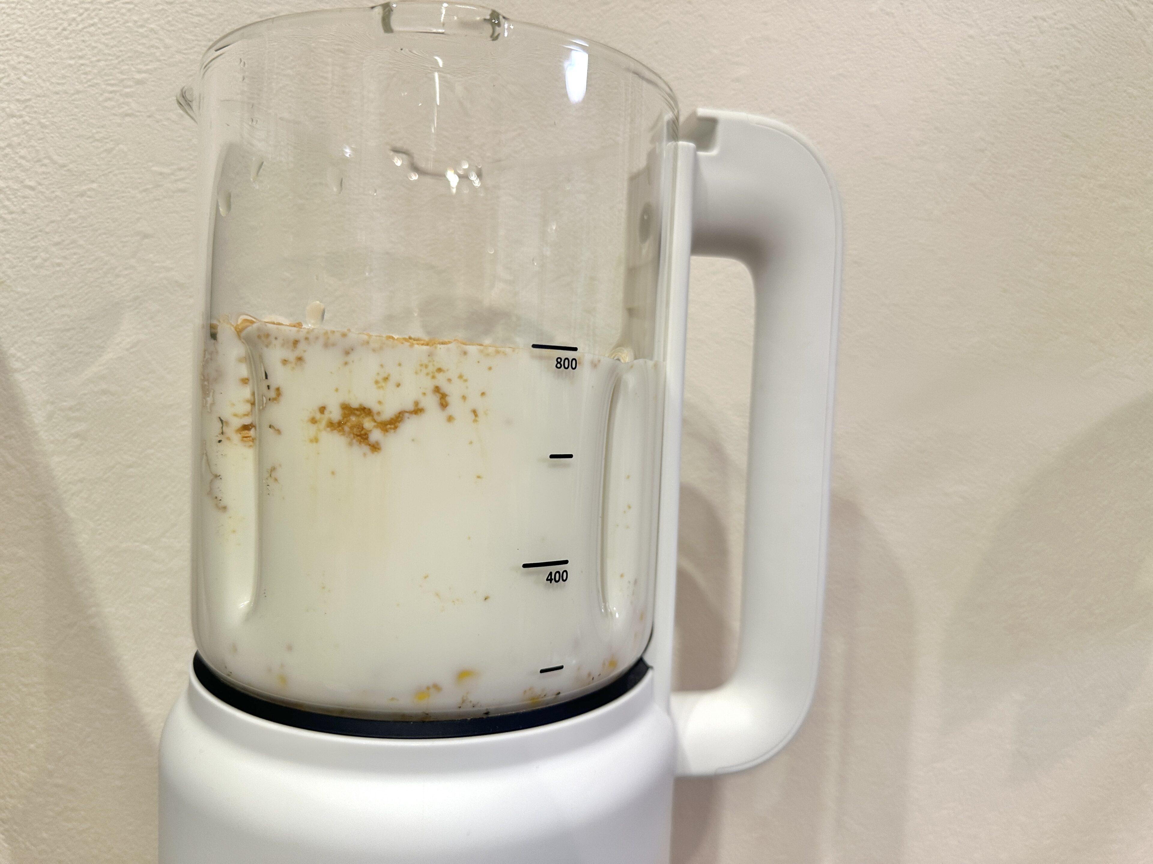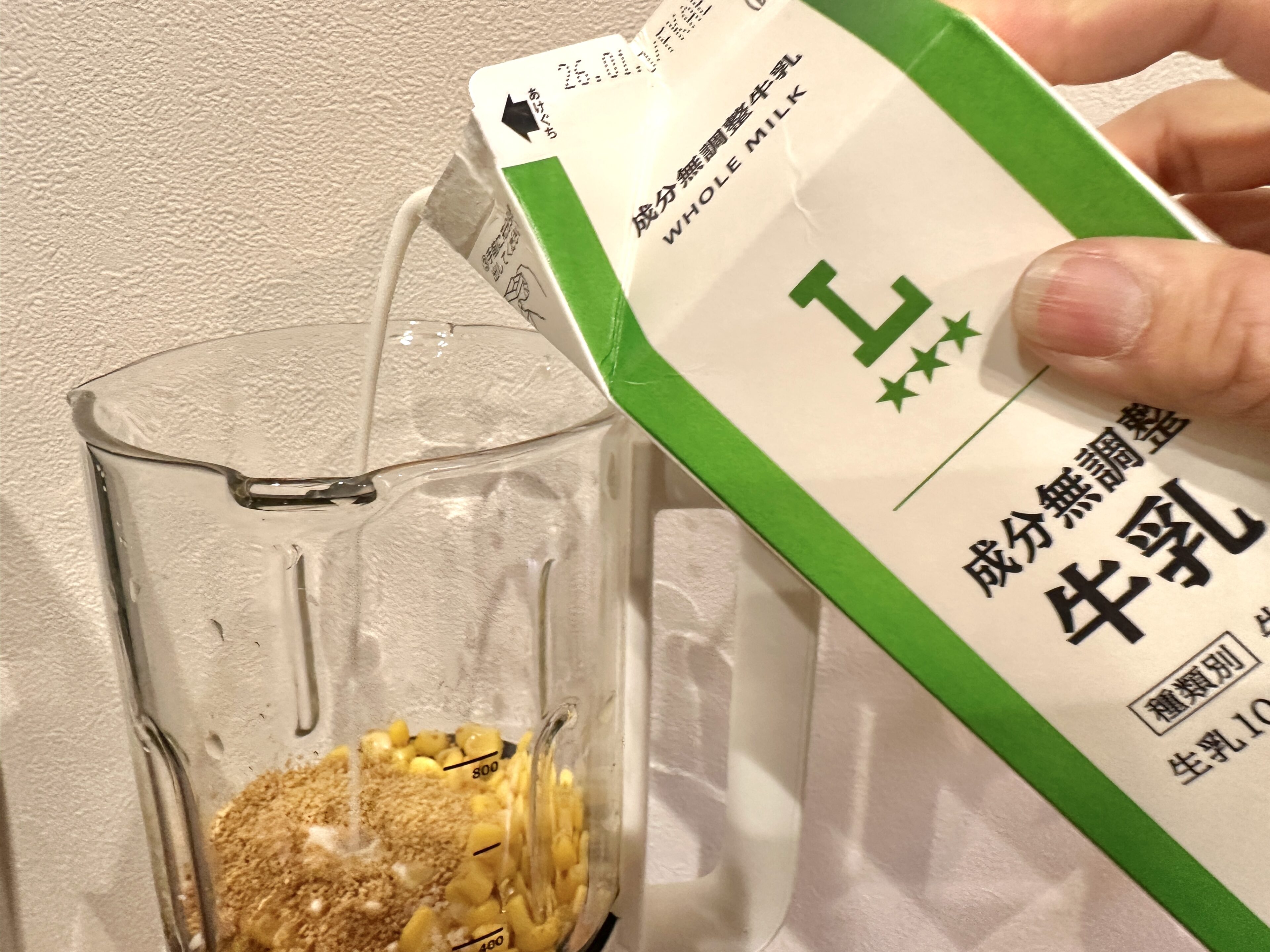 4)牛乳を800mLの線まで入れます