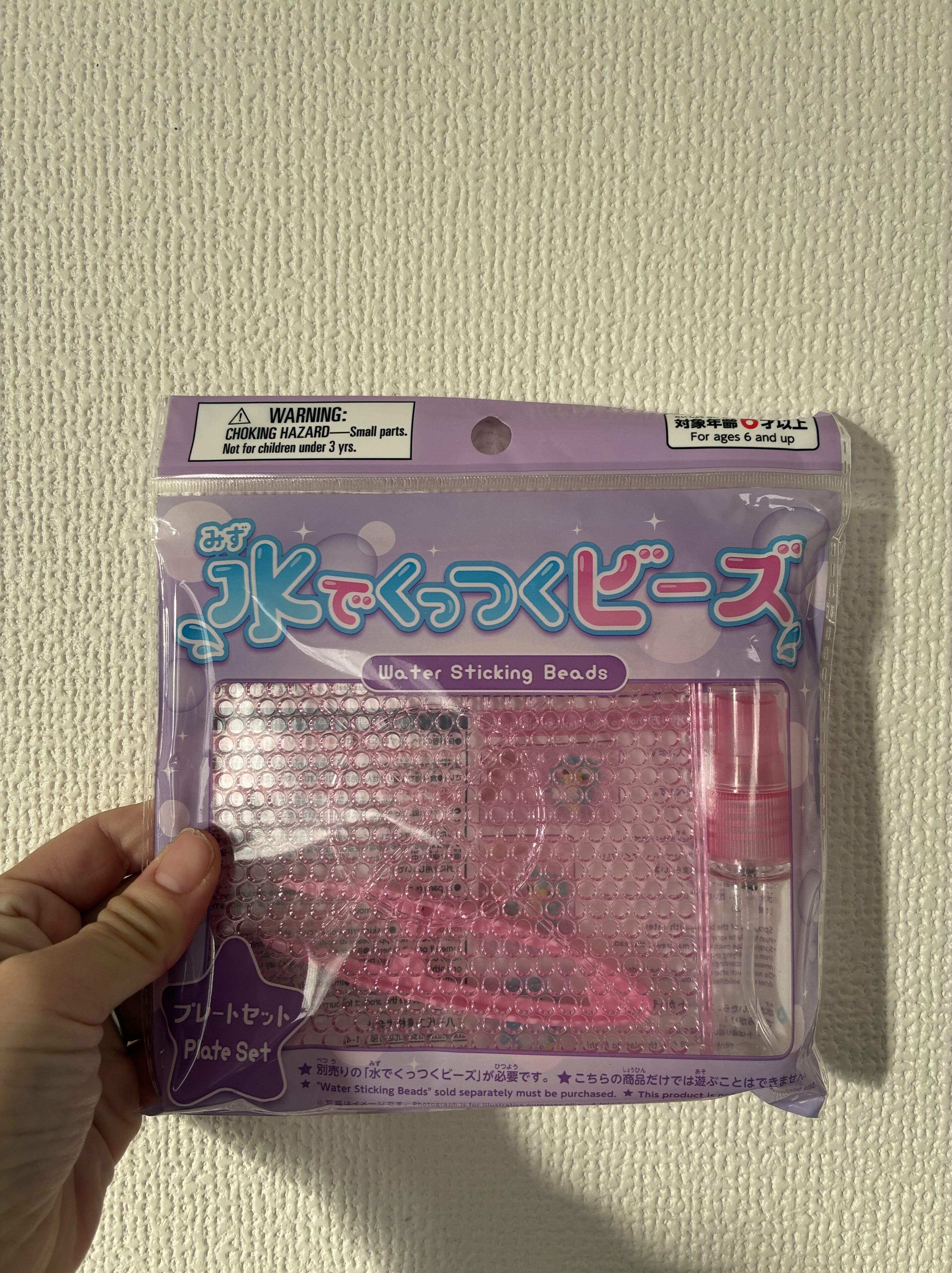 ダイソーに、水でくっつくビーズのプレートセットが販売していました!
