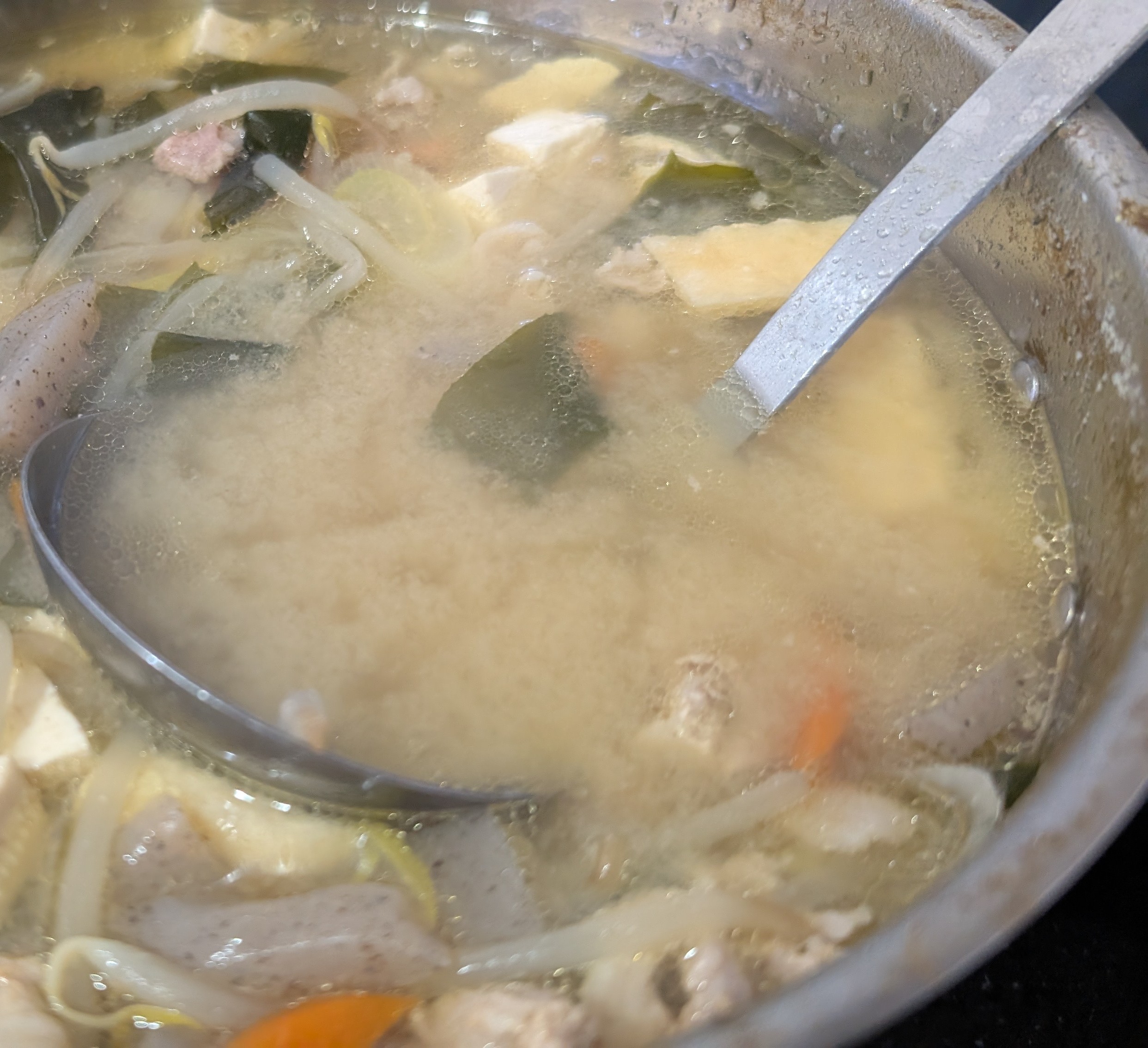 子どもたちにも「豚汁お雑煮風」は大人気で、作ってはなくなり、作ってはなくなり…という感じでした。