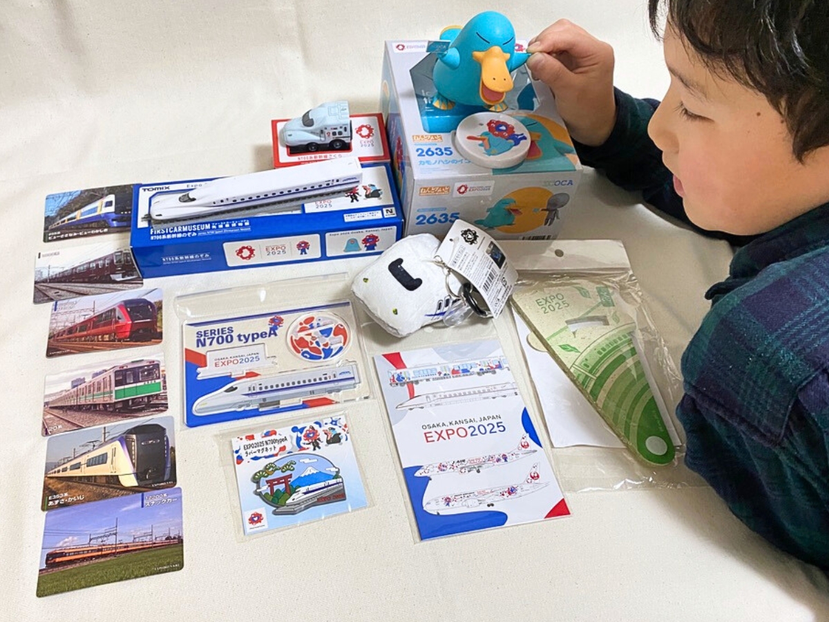 中でも息子が一番テンションが上がっていたのが、万博ラッピングの新幹線グッズたち。実は「欲しいなぁ」と思いながら買わずに帰ってしまっていたアイテムだったので、箱を見た瞬間の喜びようはすごかったです。