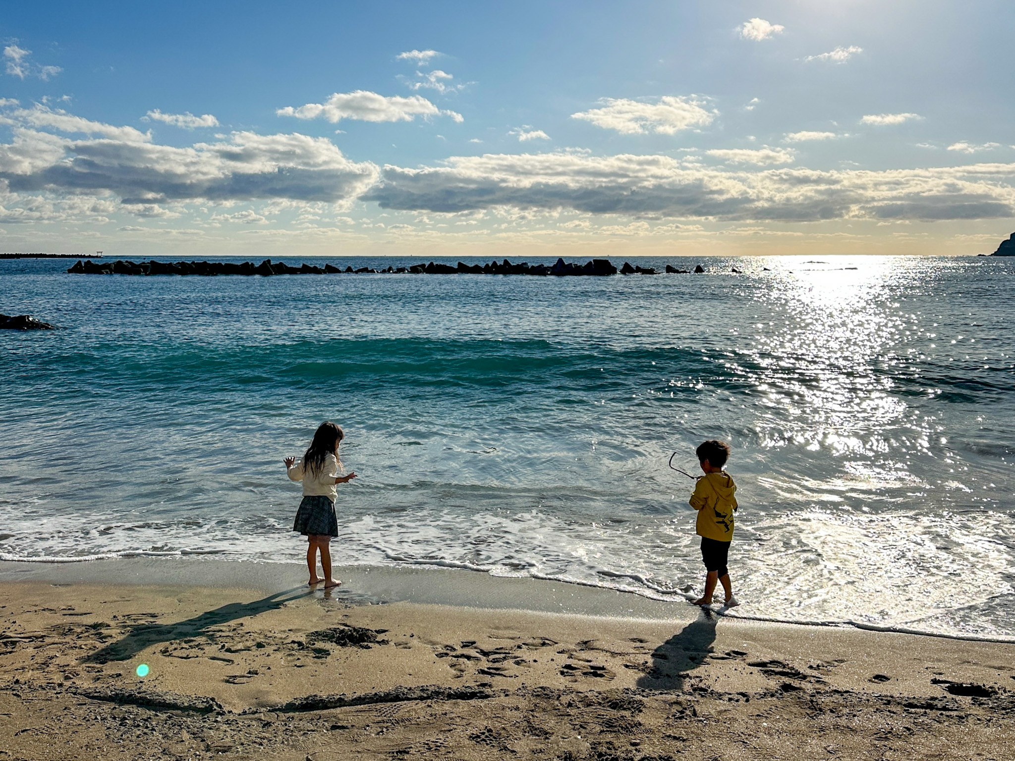外遊びが日常で、家でも外でも裸足の時間が多い。特別なことはしていませんが、午後2時過ぎに帰宅してからおやつを食べた後、基本的には毎日、公園か海に行っています。体を動かす時間はかなり多い方かもしれません。日光にも潮風にもよく当たっています。