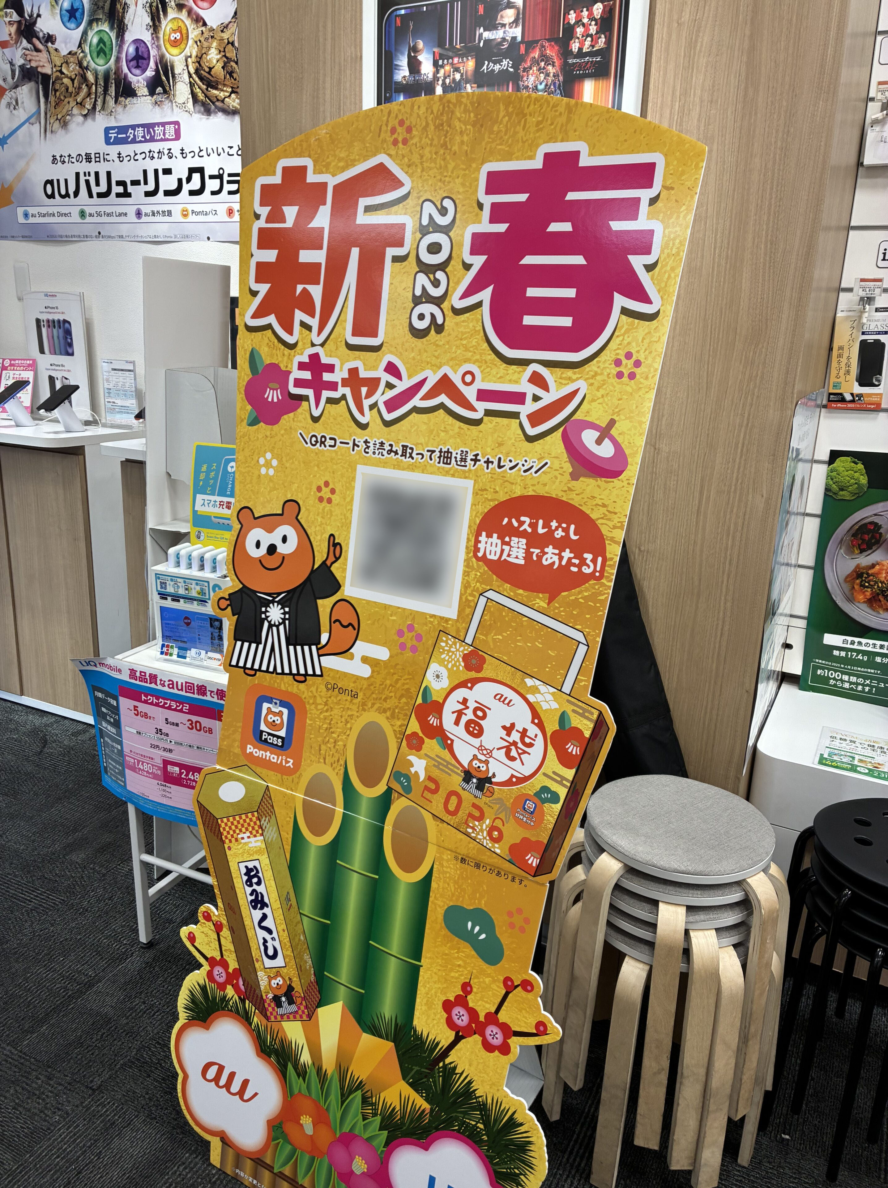 au Styleもしくはauショップ UQスポットに来店し、アンケート回答でハズレなしの福袋をプレゼントしていただけるキャンペーンが、2026年1月1日から13日まで開催しているそう!