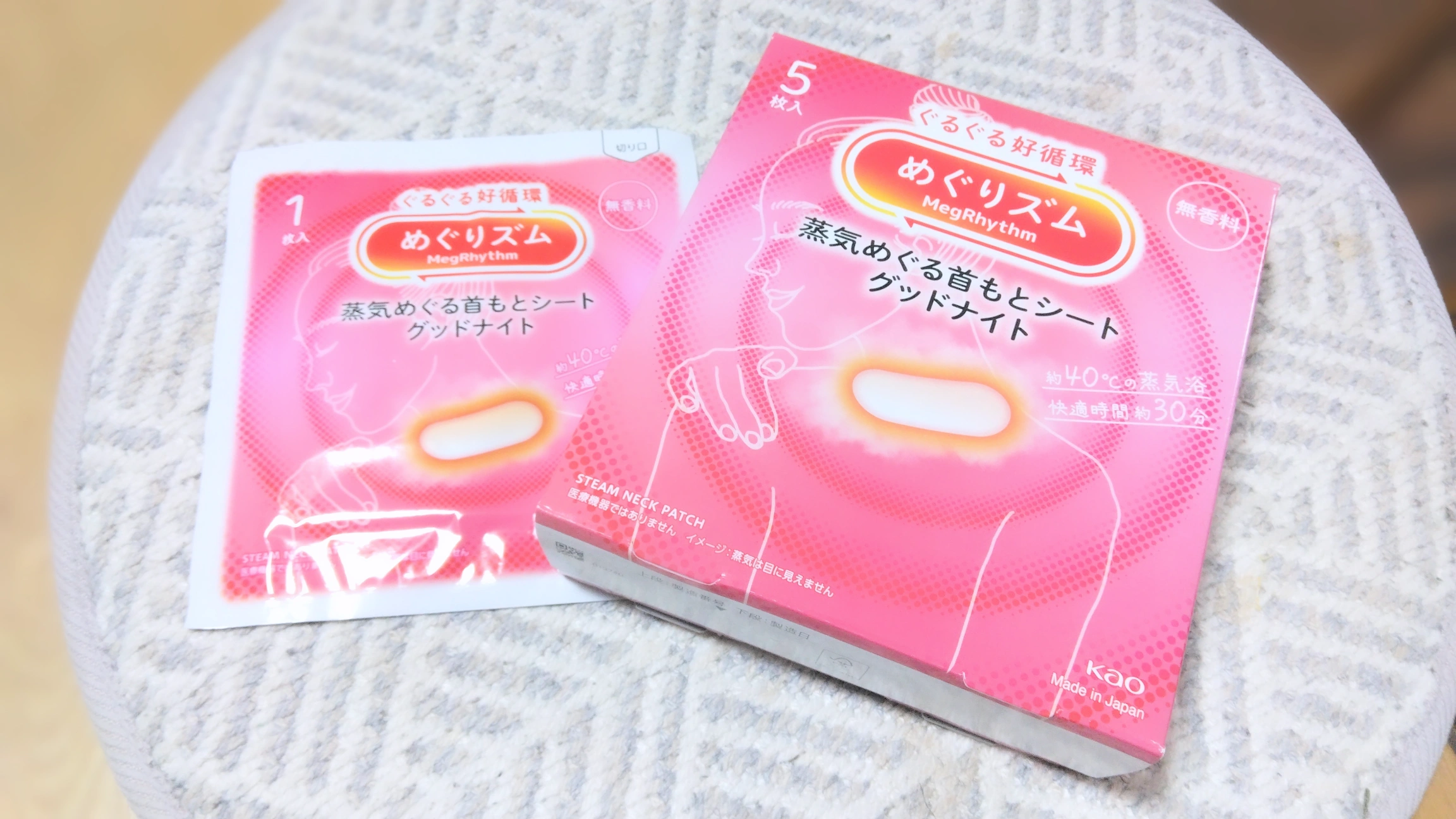 目に貼るタイプだけではない「めぐリズム」。私が愛用している「蒸気めぐる首もとシート」の良いところは、ながらケアができること。肌に直接貼るタイプなのも手軽です。