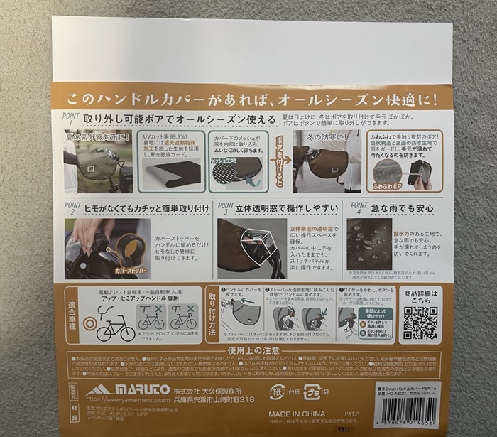 商品名は、MARUTOの「夏冬2wayハンドルカバー PENTA」。私はYahooショッピングで3250円で購入しました。