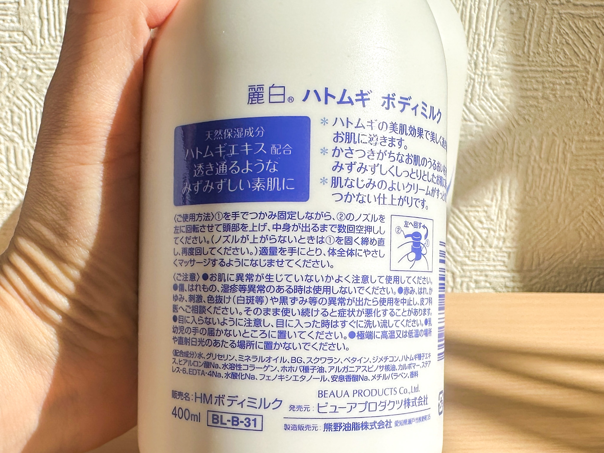 商品名:麗白 ハトムギ ボディミルク 400ml