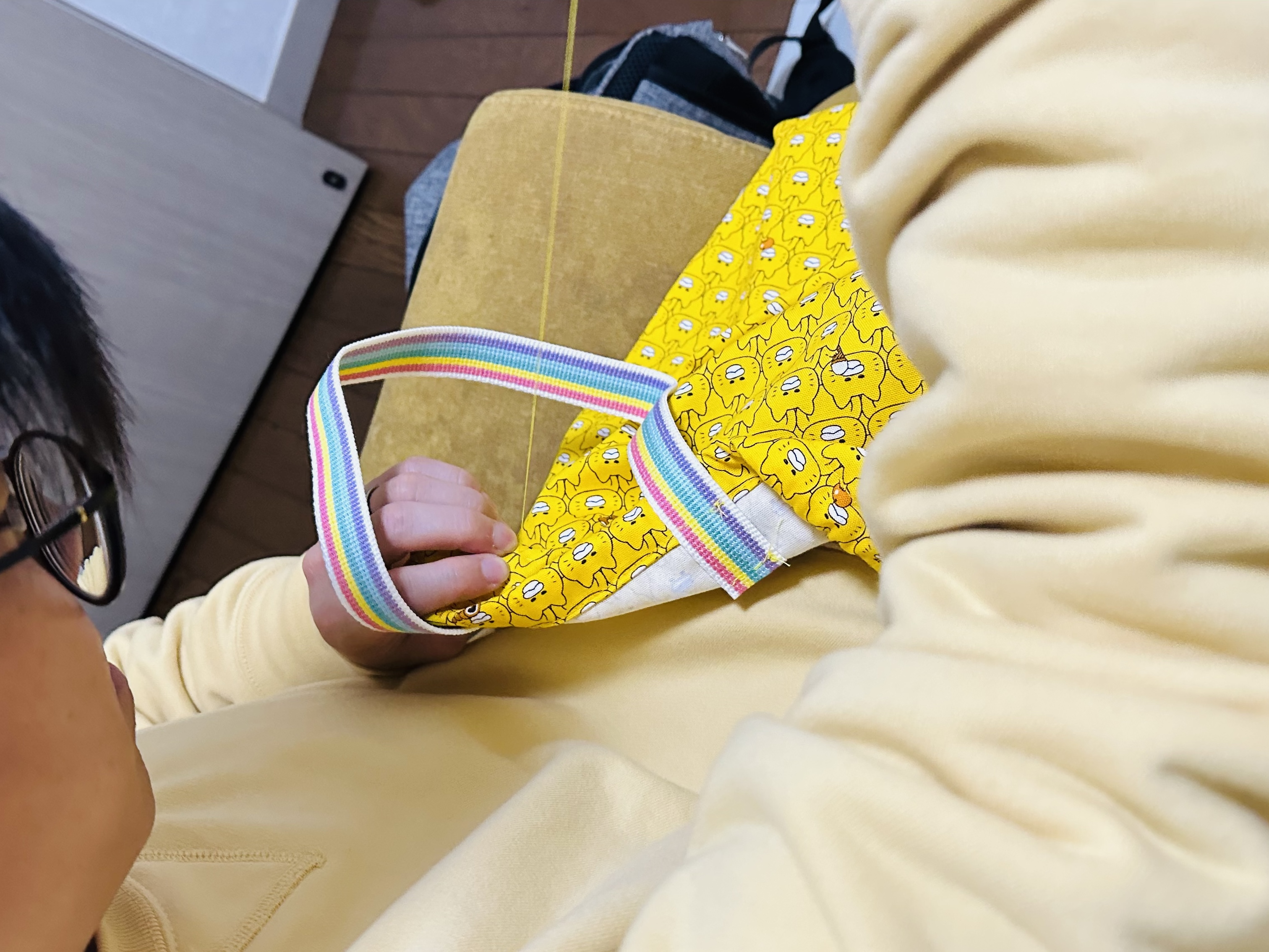 入園準備の中でも、特に印象に残っているのが裁縫です。通園バッグやお着替え袋など、双子分となると数も工程もそれなりにあります。夫婦で相談した結果、「裁縫が得意かどうか」は関係なく、何事も夫婦で一緒に準備することにしました。