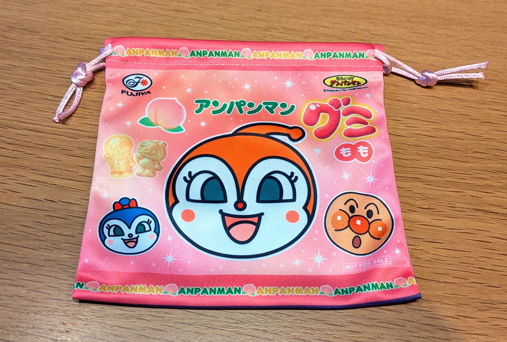 先日、近所のスーパーで不二家の対象商品を3点買うと"アンパンマングミ巾着"がもらえるキャンペーンを発見しました。