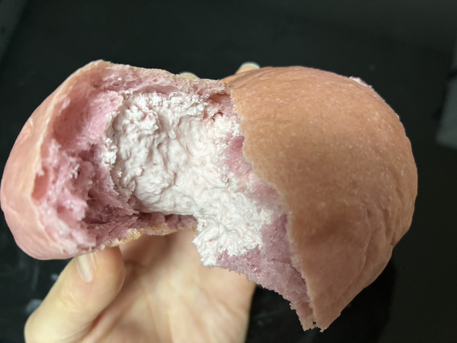 これはヒット!適度なもちっと感、しっとりパン生地、そこにさっぱりとした苺ホイップがふわっと入っていて、食後でもペロリといけちゃいます。小腹が空いた時のおやつにも◎。リピ確定です!