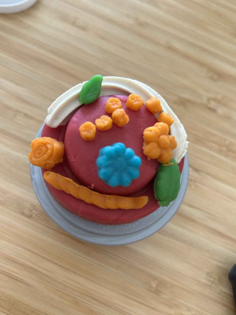 オーブン型のおもちゃにねんどをセットしてレバーを下げると…本物のオーブンのようにチーン!と音が鳴り、なんと二段重ねのケーキの形に大変身!
