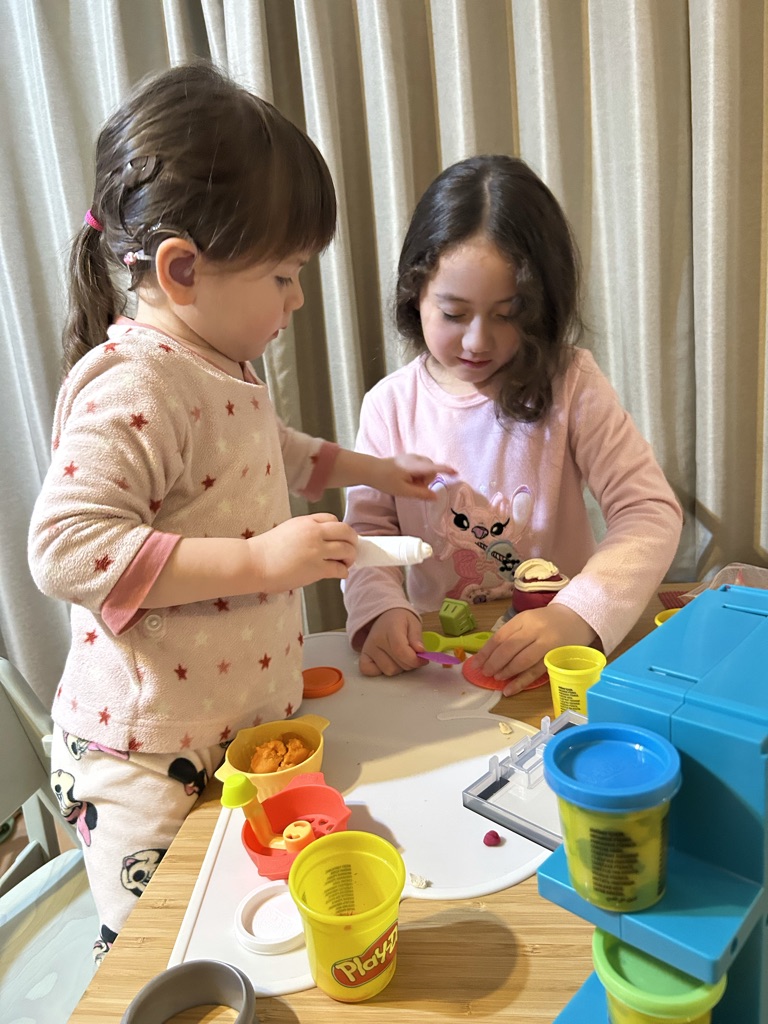 色もかわいく扱いやすいねんどなので、姉妹揃って夢中でスイーツ作りを楽しんでいます。