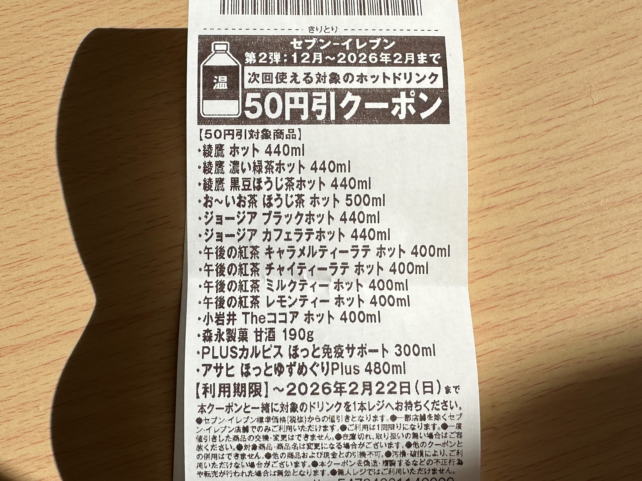 レシートは忘れずに保管!他のホットドリンクも楽しめるこの機会をお見逃しなく。