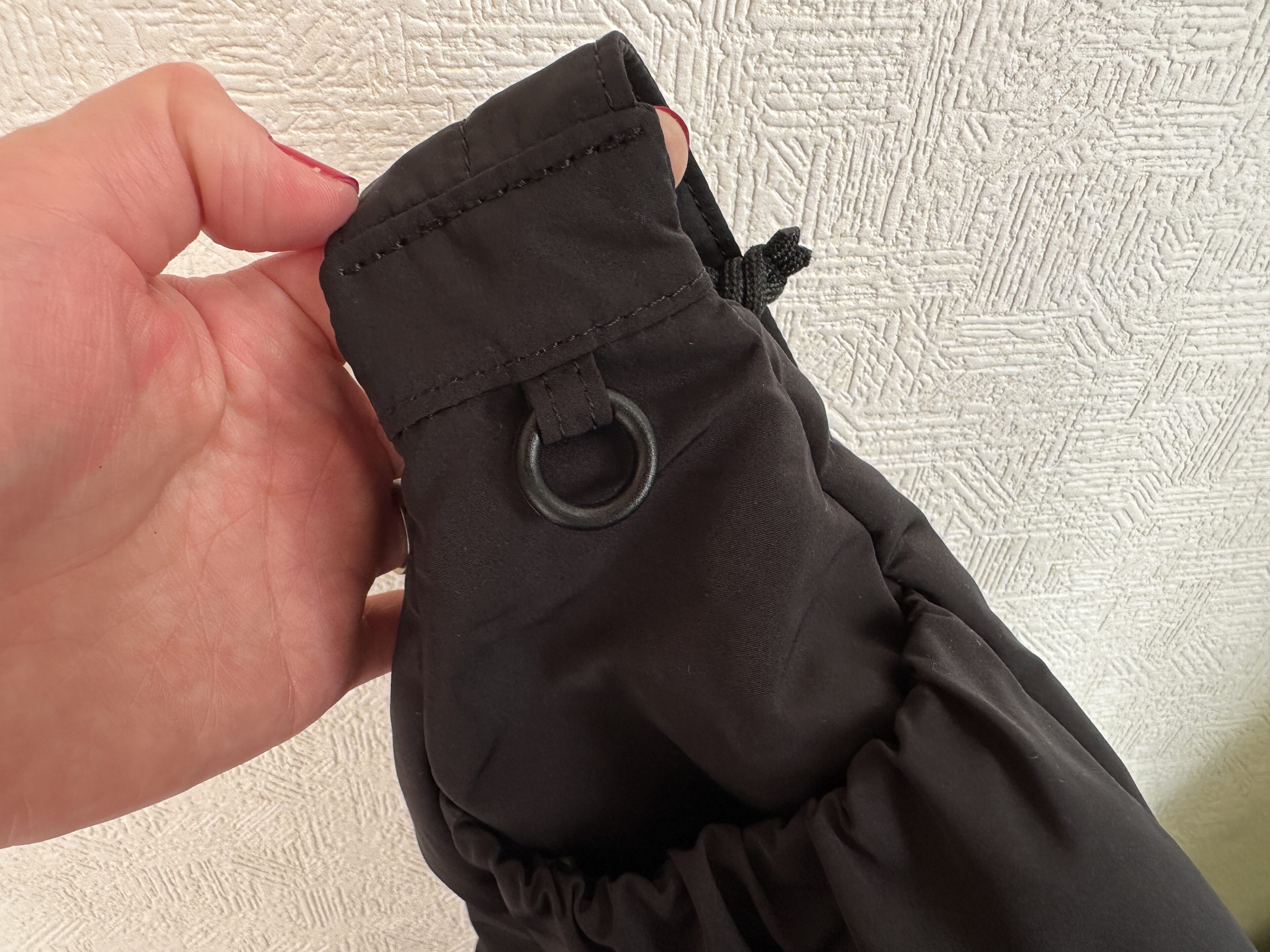 外側にミニリングがあり、チャームや小さなポーチを付けられる仕様。鍵やパスケースなど、すぐ取りたいものを工夫できそうです。