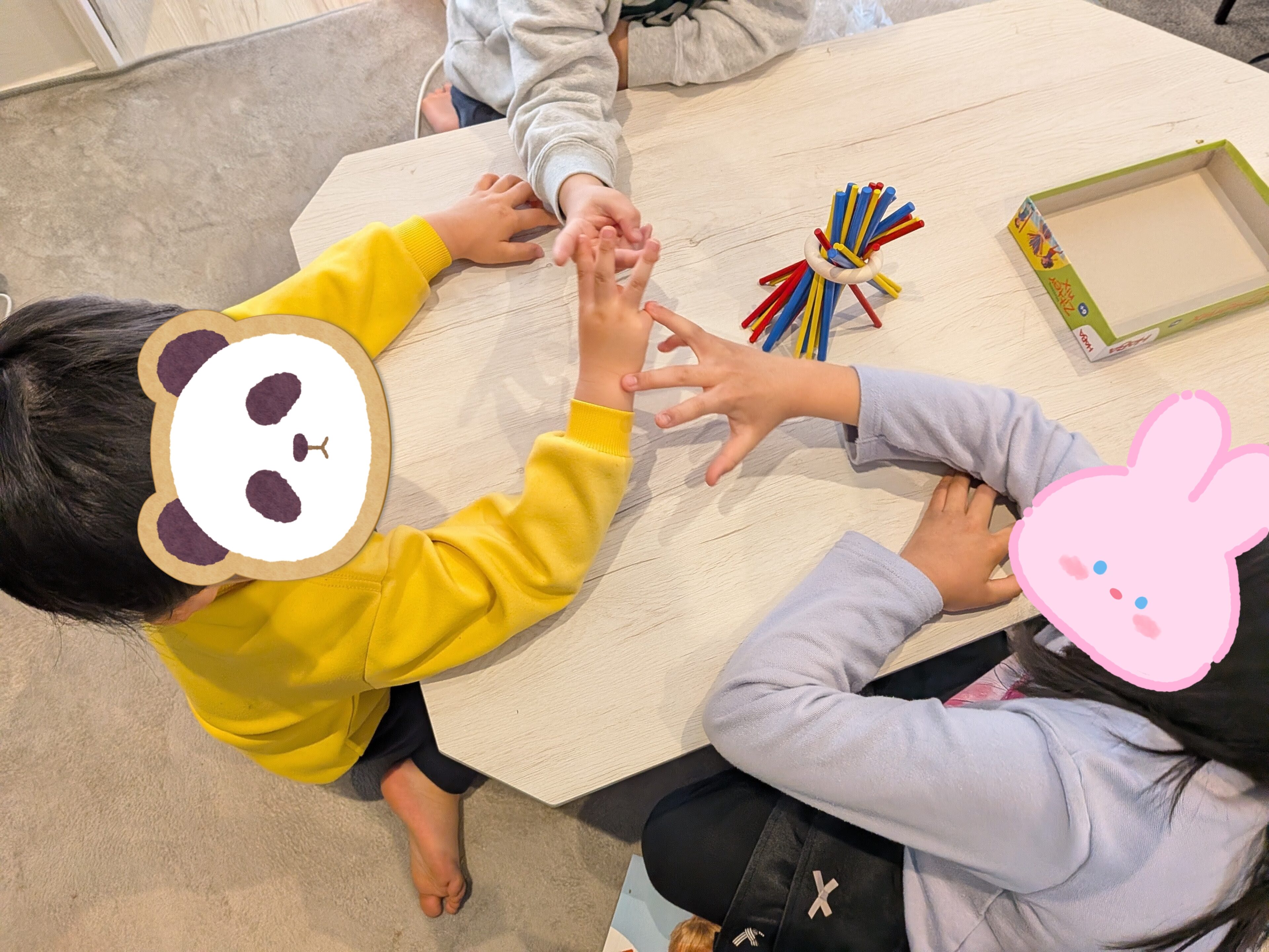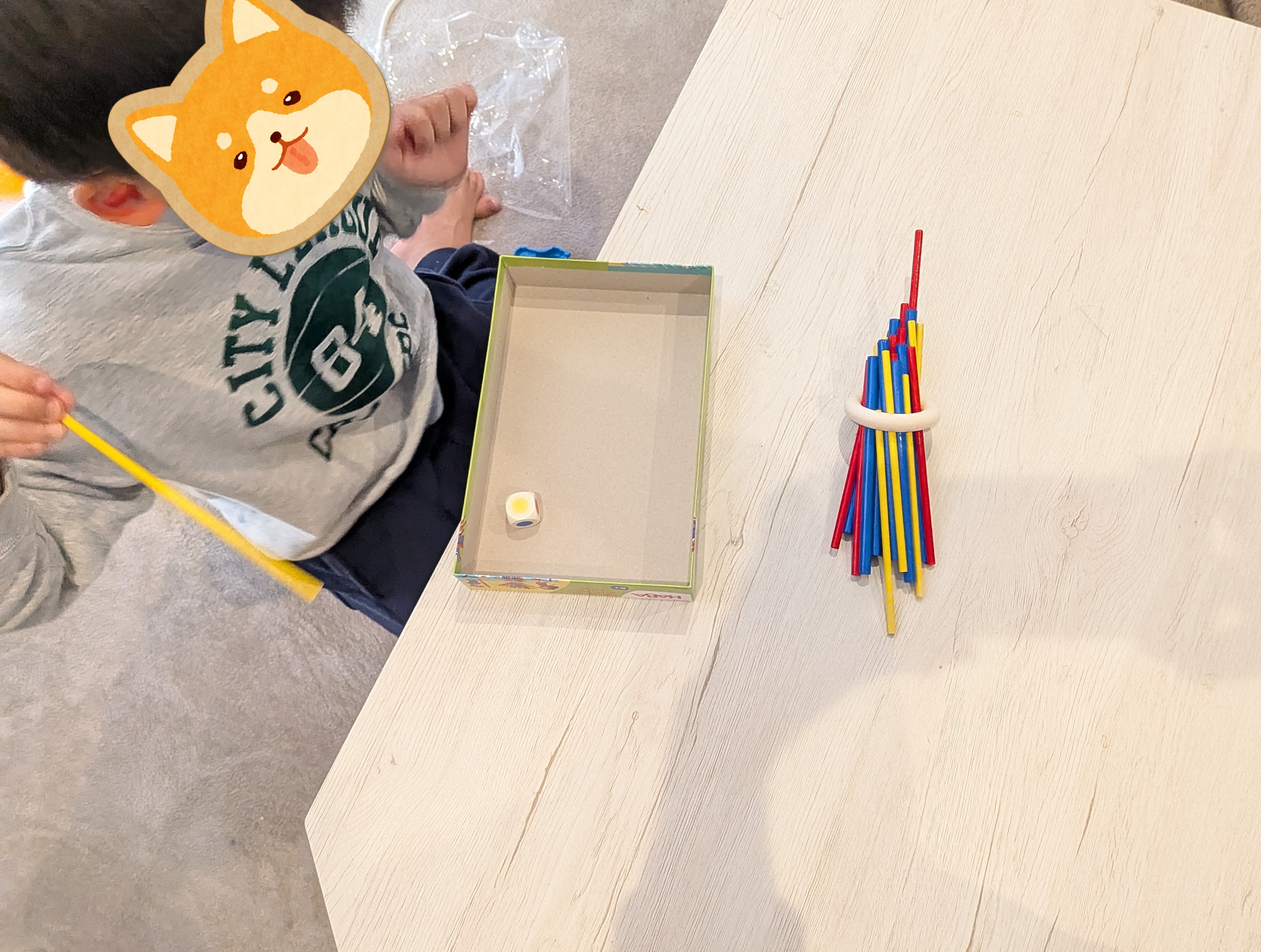 年長の長男が自分の持っているスティックの点数を頑張って計算していて、予期せぬ足し算の練習になっていました。