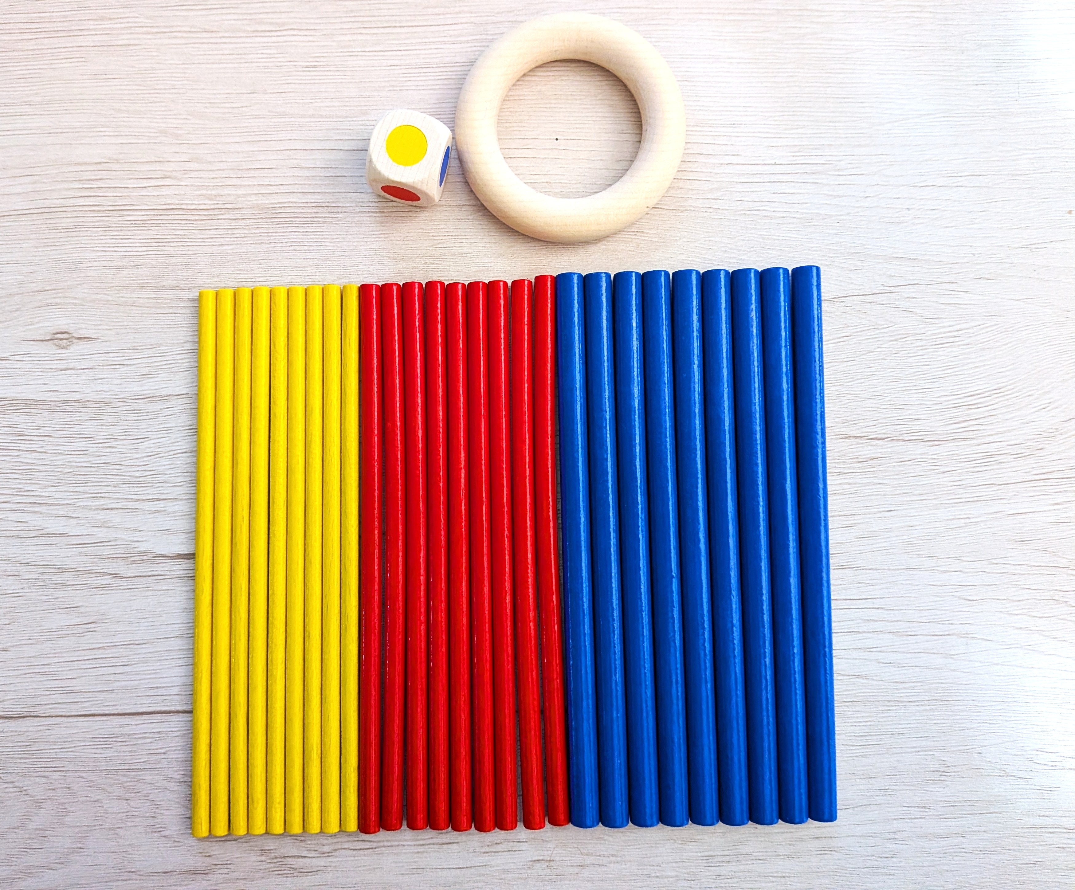 2、順番にサイコロを振って、出た色のスティックを1本ずつ抜きます。