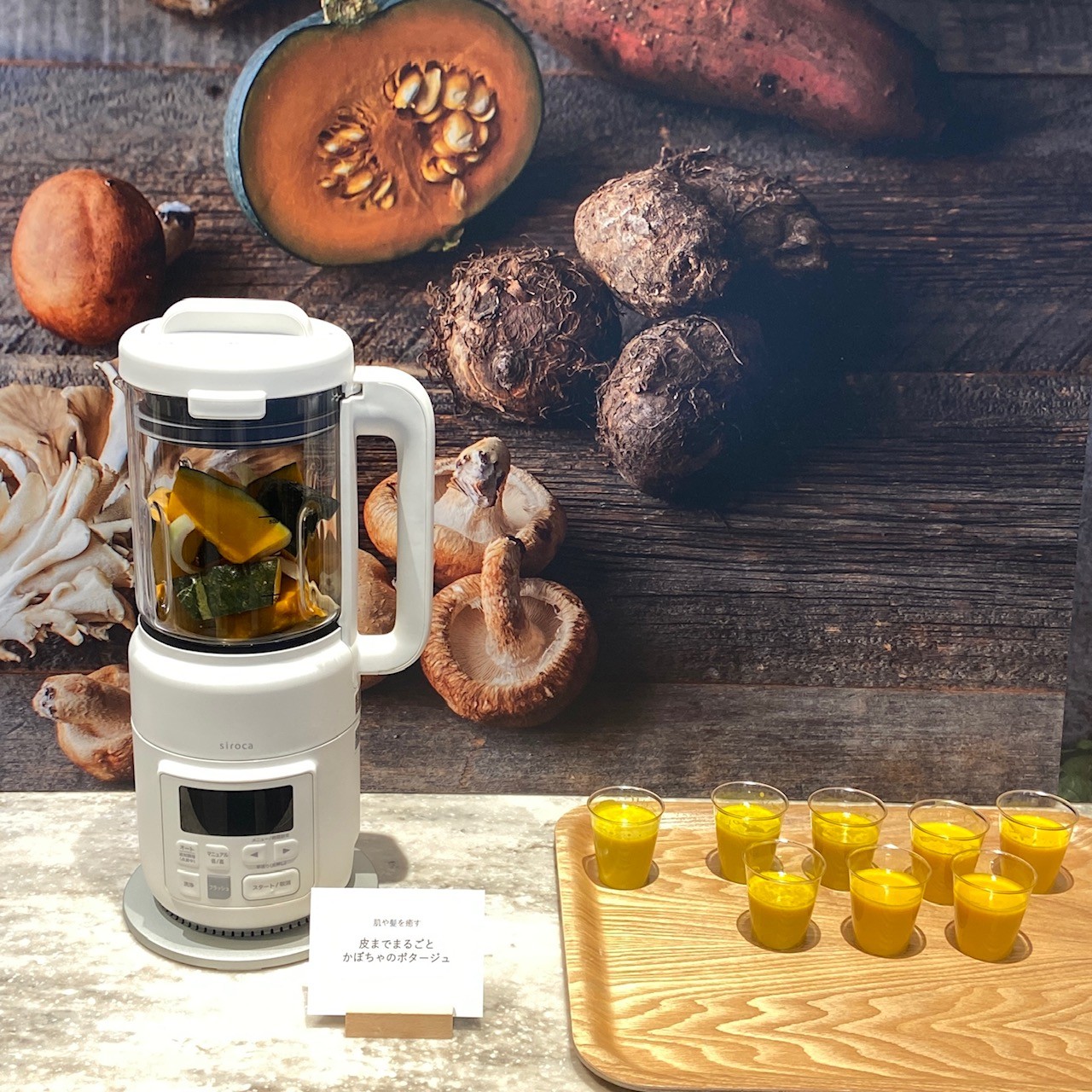 材料を入れてスイッチを押すだけで、ポタージュスープやスムージー等が作れる便利家電!