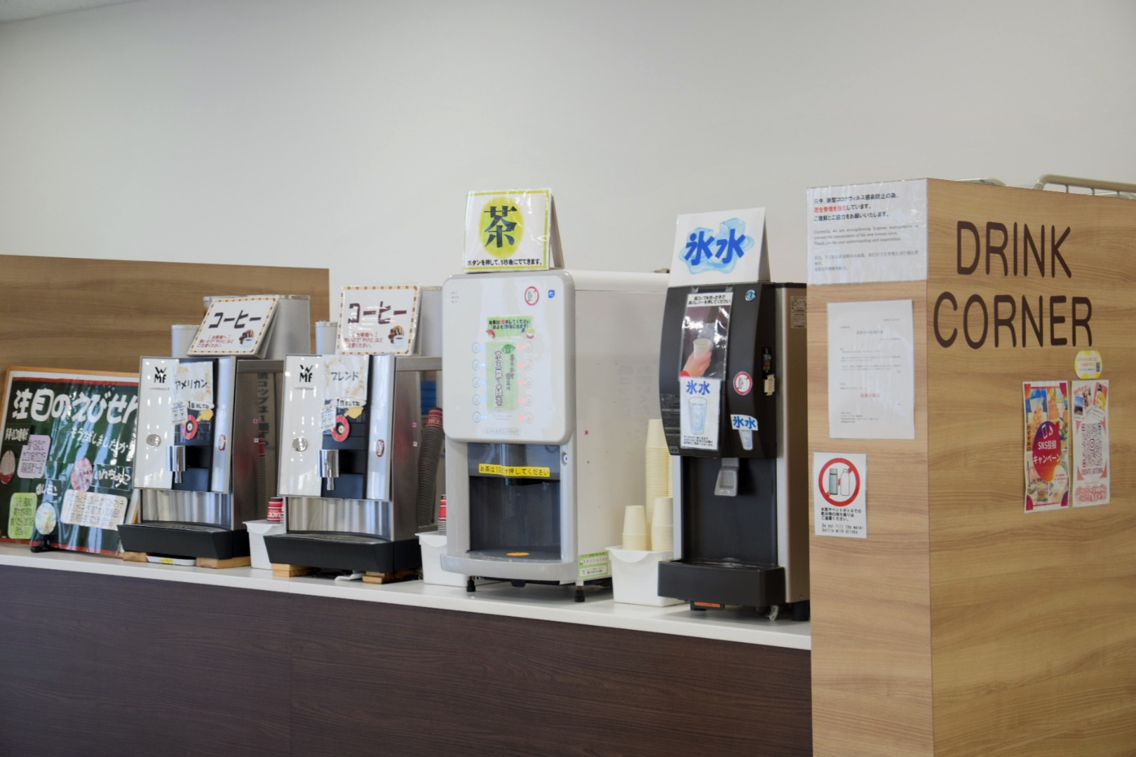 試食のあとにひと息。無料ドリンクサービスがありがたい