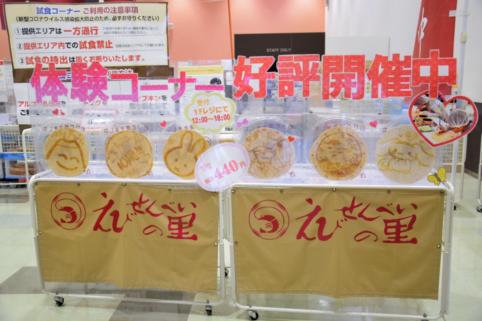 館内2階には、大きなえびせんべいを作れる体験コーナーがあります。