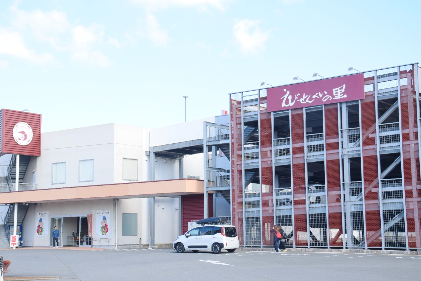 えびせんべいの里 御殿場店は、立体駐車場が併設された大型店舗です。