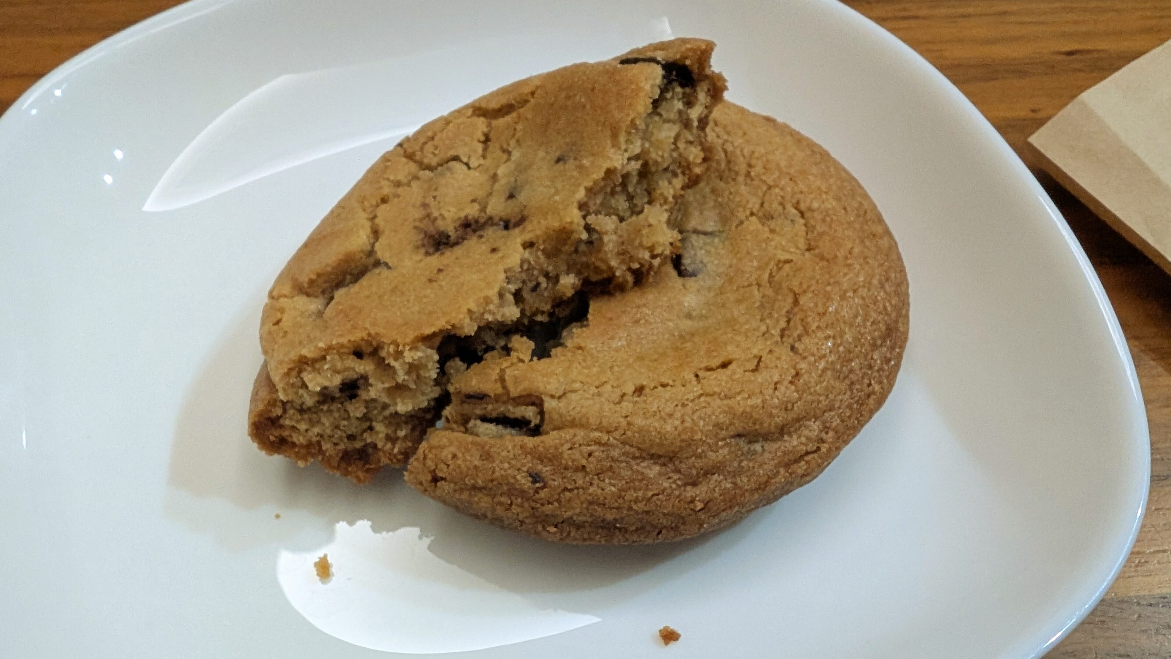 「お店で焼いたふんわりメロンパン」や「お店で焼いたサクサククロワッサン」は全国展開されていますが、この「お店で焼いたチョコクッキー」は37都道府県の一部店舗のみでの販売だそうです。