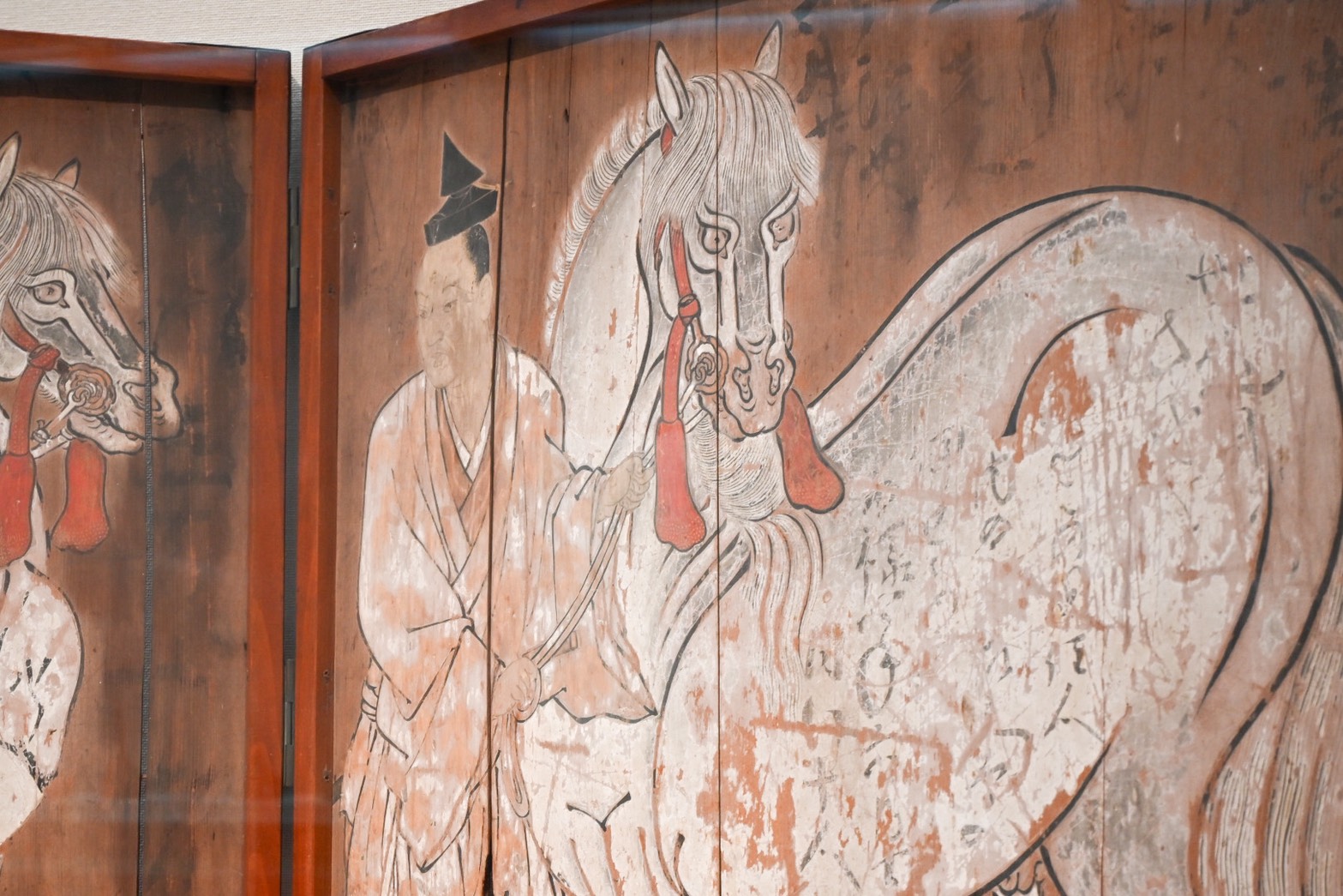 「重要文化財 神馬図額(しんめずがく)」を見たときは、馬の目を見てちょっと怖がる場面も。