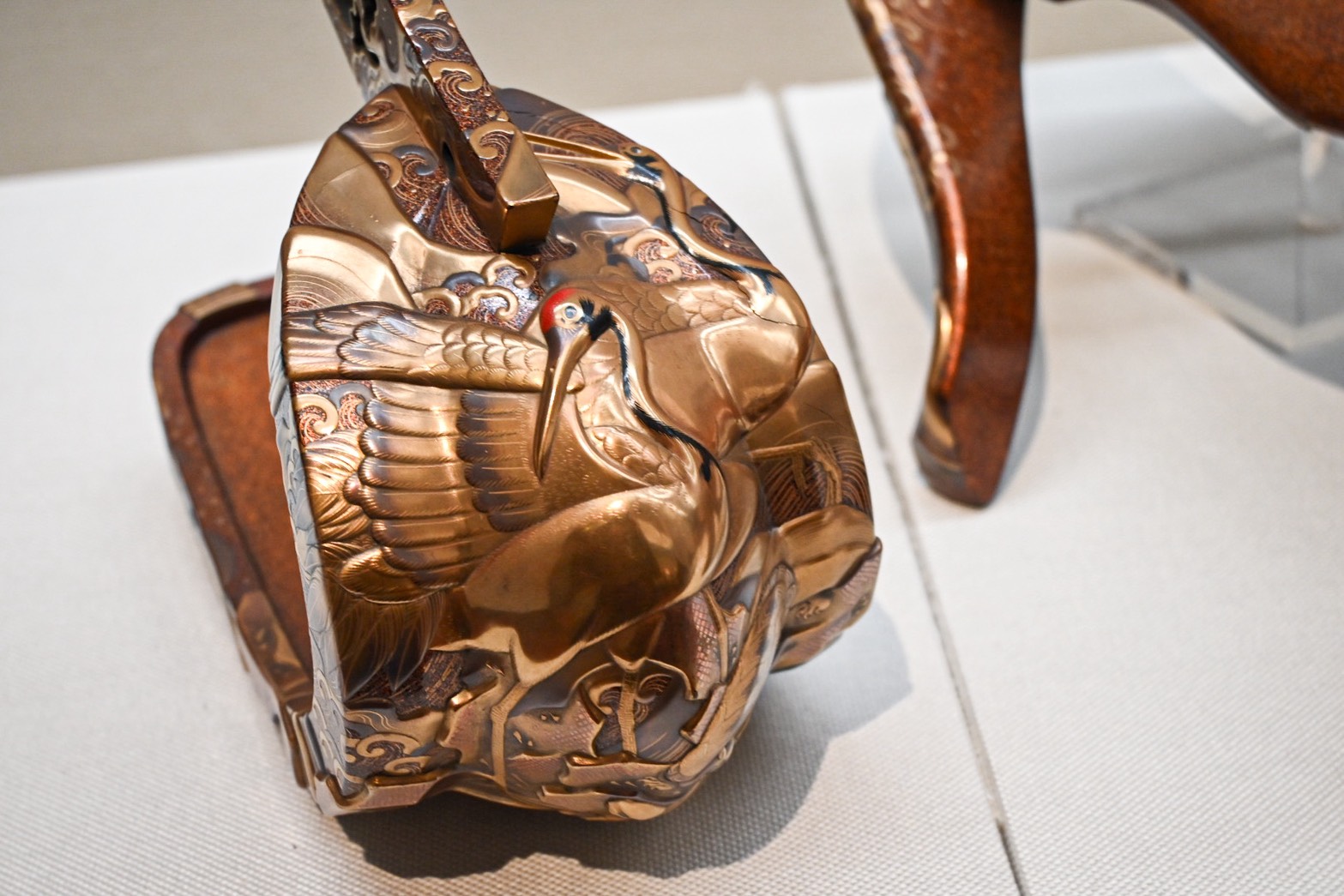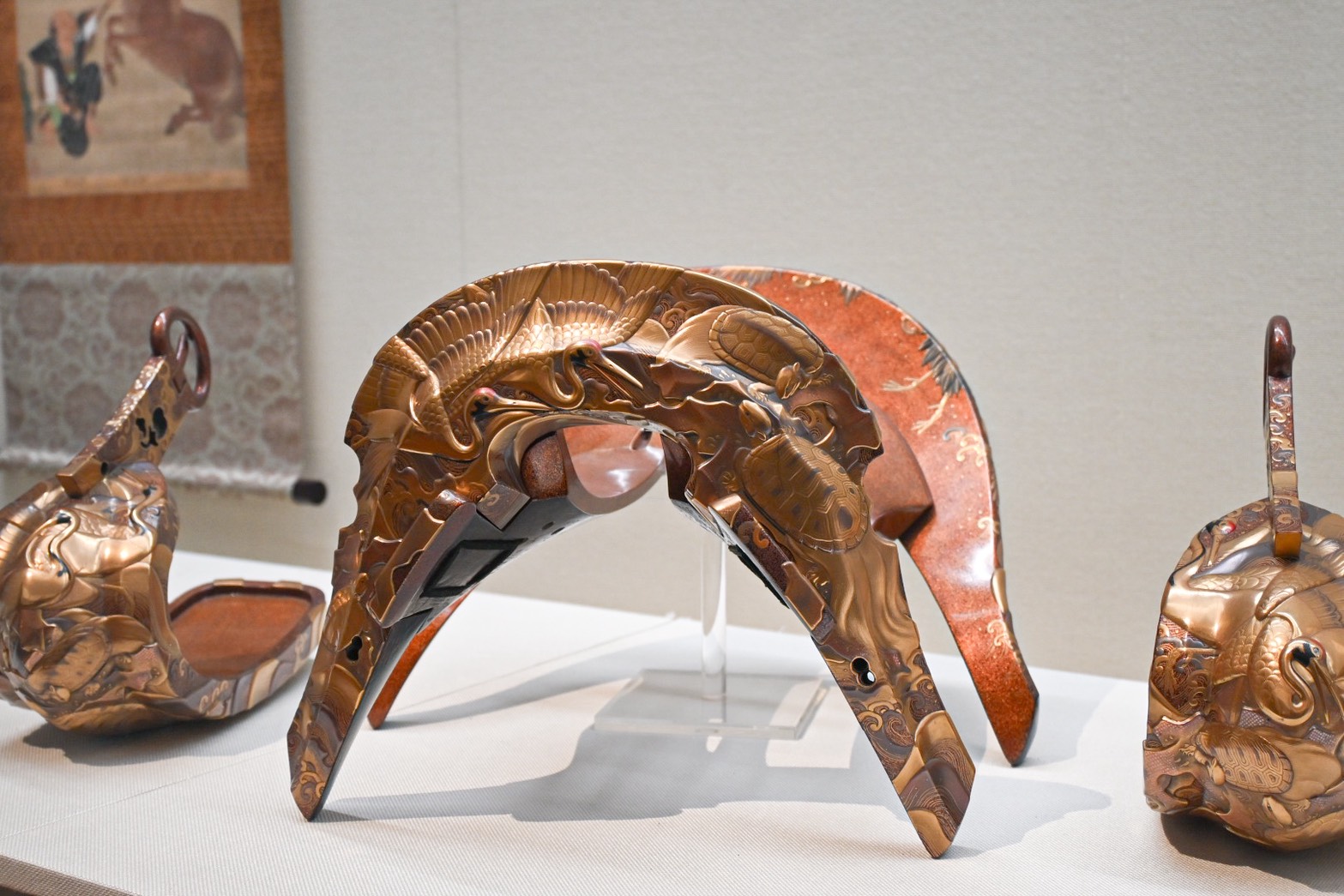 「鶴亀蒔絵鞍鐙(つるかめまきえくらあぶみ)」はよく見ると鶴と亀が居ることに気づき、隠れキャラを発見したかのように、またもや大興奮でした。