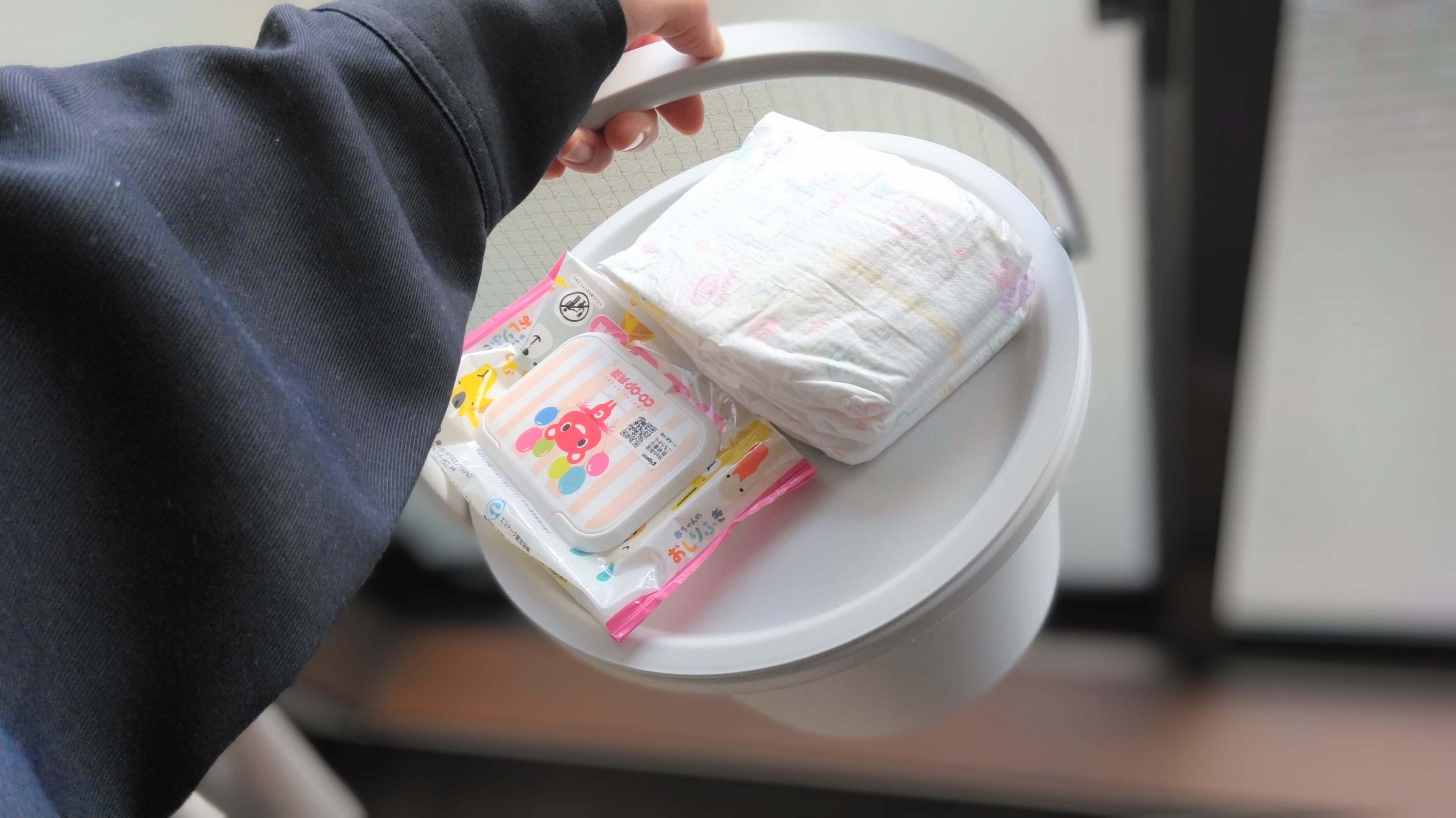 バケツだと気が付かないくらい、店内でも馴染んでいた商品。購入時マイバッグを持っていなかったので(紙袋にも入りそうになかったので)取っ手に腕を通してその後もお買い物をしましたが、約450gという軽量さに加え、バケツ感のないバケツだったので(端から見たら正真正銘のバケツだったかもしれませんが)気楽でした。早くおむつ以外の用途で使いたい、魅力あふれるバケツのご紹介でした。