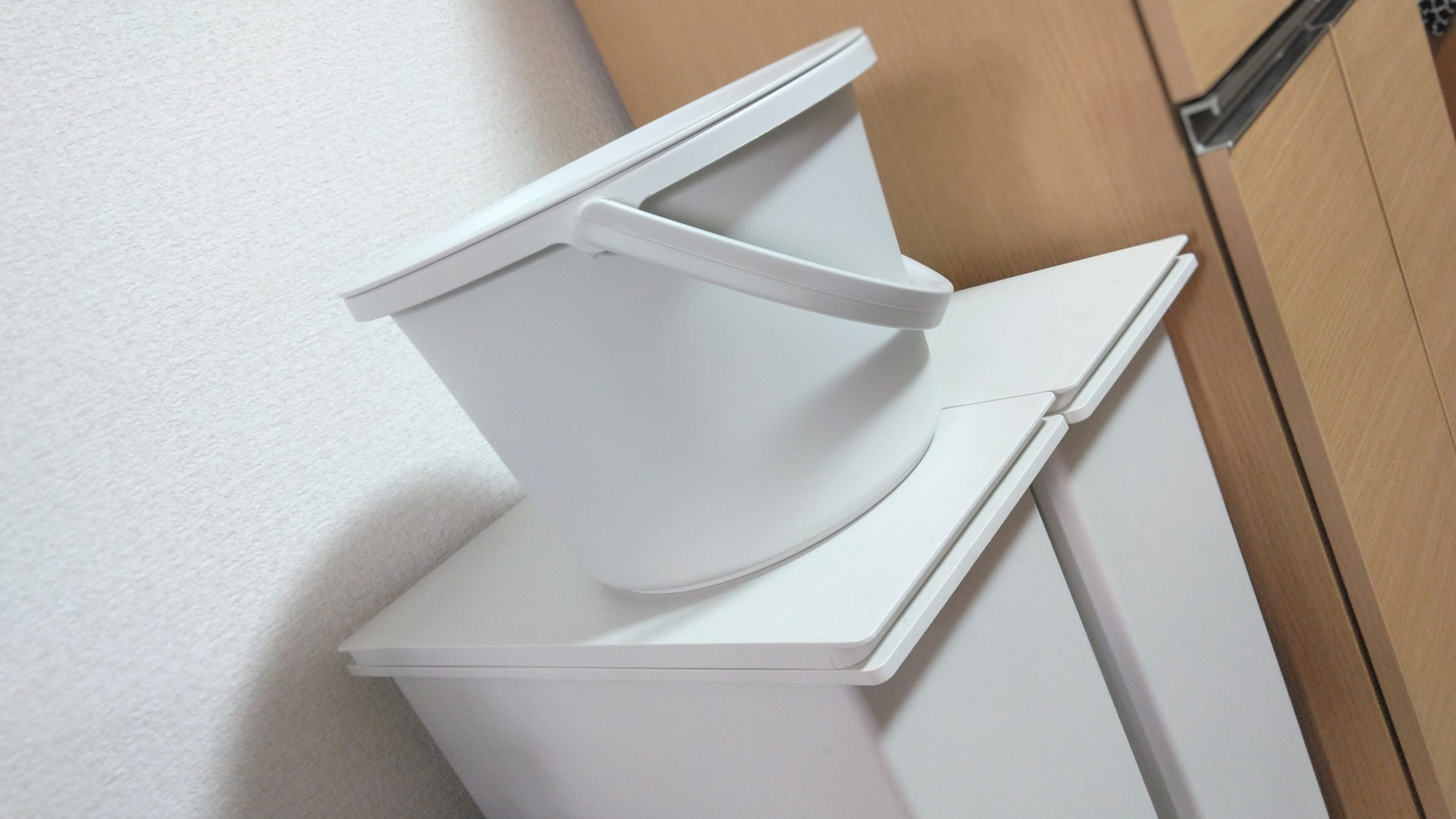 我が家は無印良品のゴミ箱も愛用しているのですが、それと同じ質感・カラーです。図らずとも統一感が得られてラッキー。