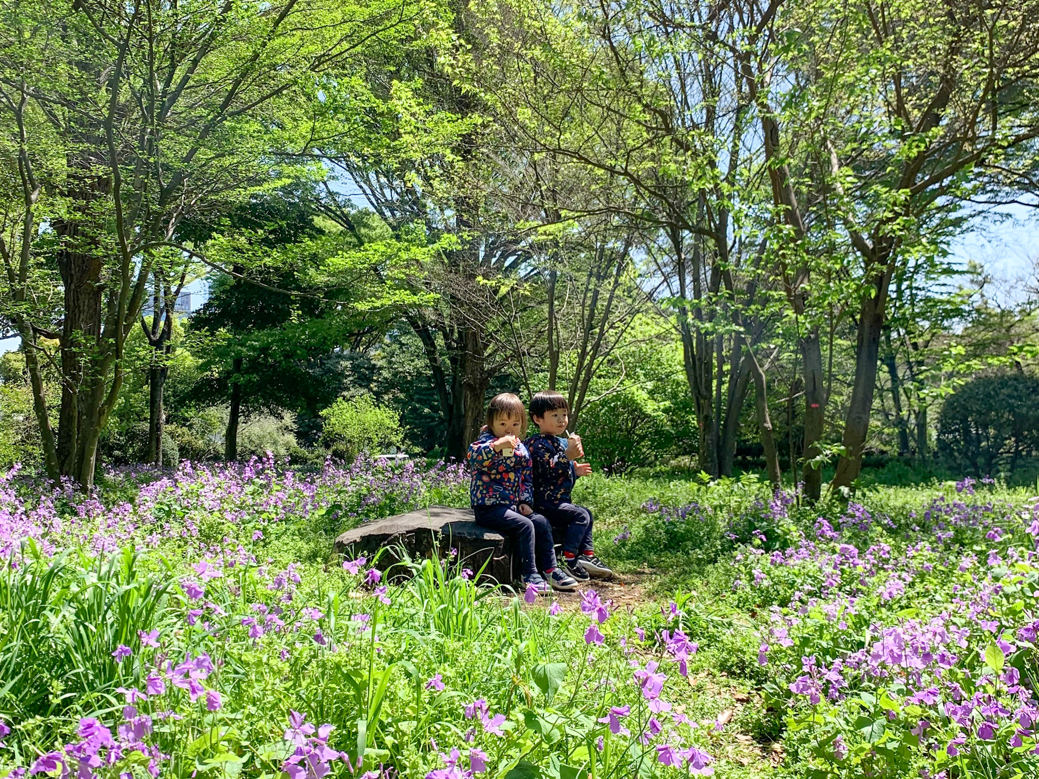 ありがたいことに、今回は東京ドームホテルに宿泊できて、双子はパパと一緒にホテルでお留守番。でも、3年前とはまったく違いました。ホテル周辺をお散歩したり、遊園地で遊んだり、アイスを買って食べたりと、「夜の東京」を楽しめた様子。