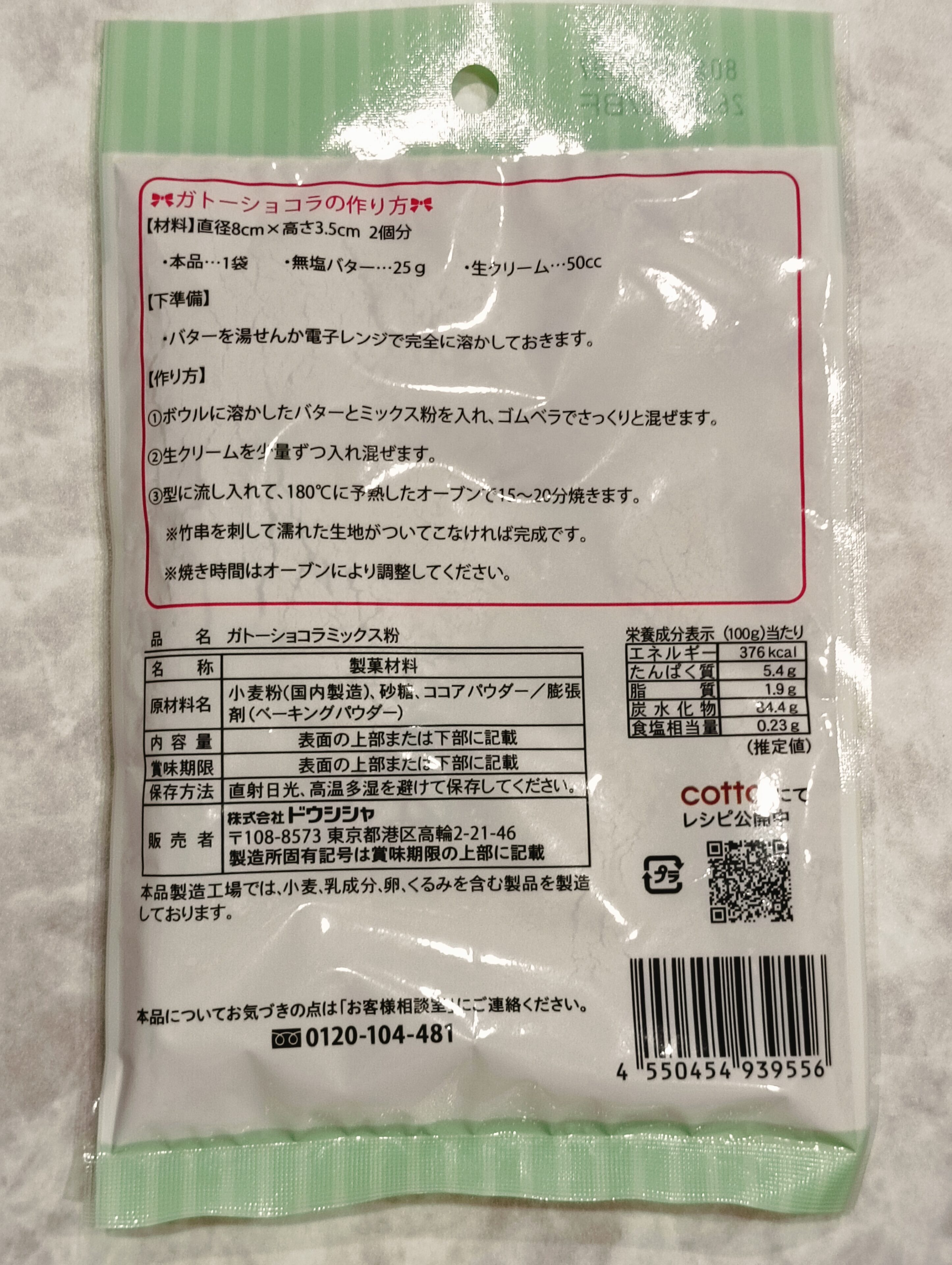 このガトーショコラミックス粉は、1袋80g。そう、20g足りませんでした…。